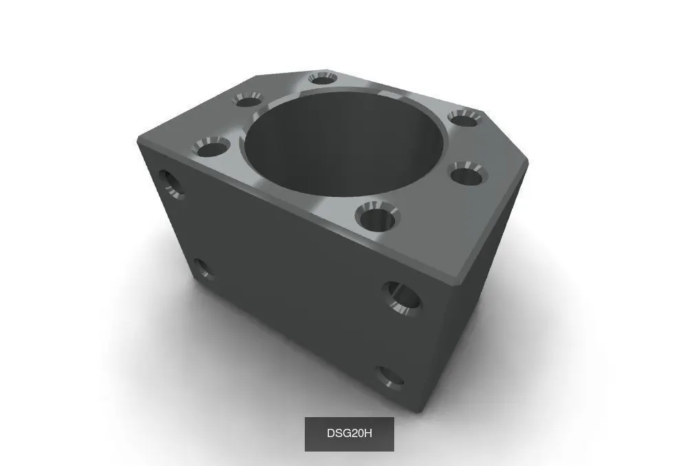 The 3D model of the ball screw nut holder ensures the coupling of the nut with the moving assembly. They are also called mount modules or brackets. The collection contains stl models: