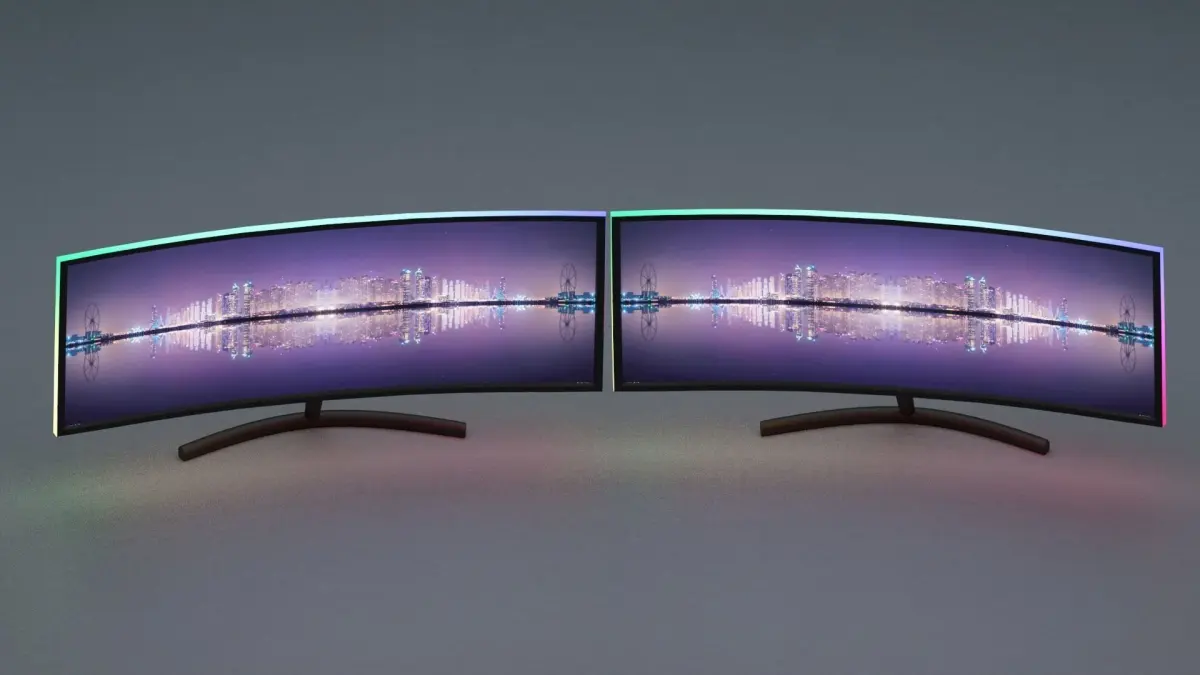 dual gaming monitors with RGB lights Free 3D model