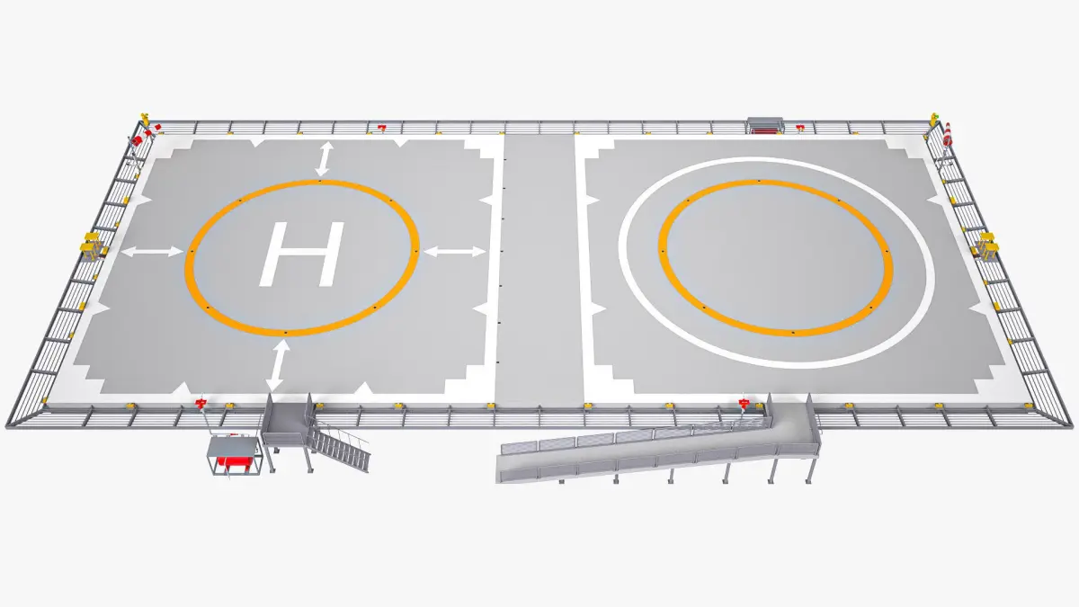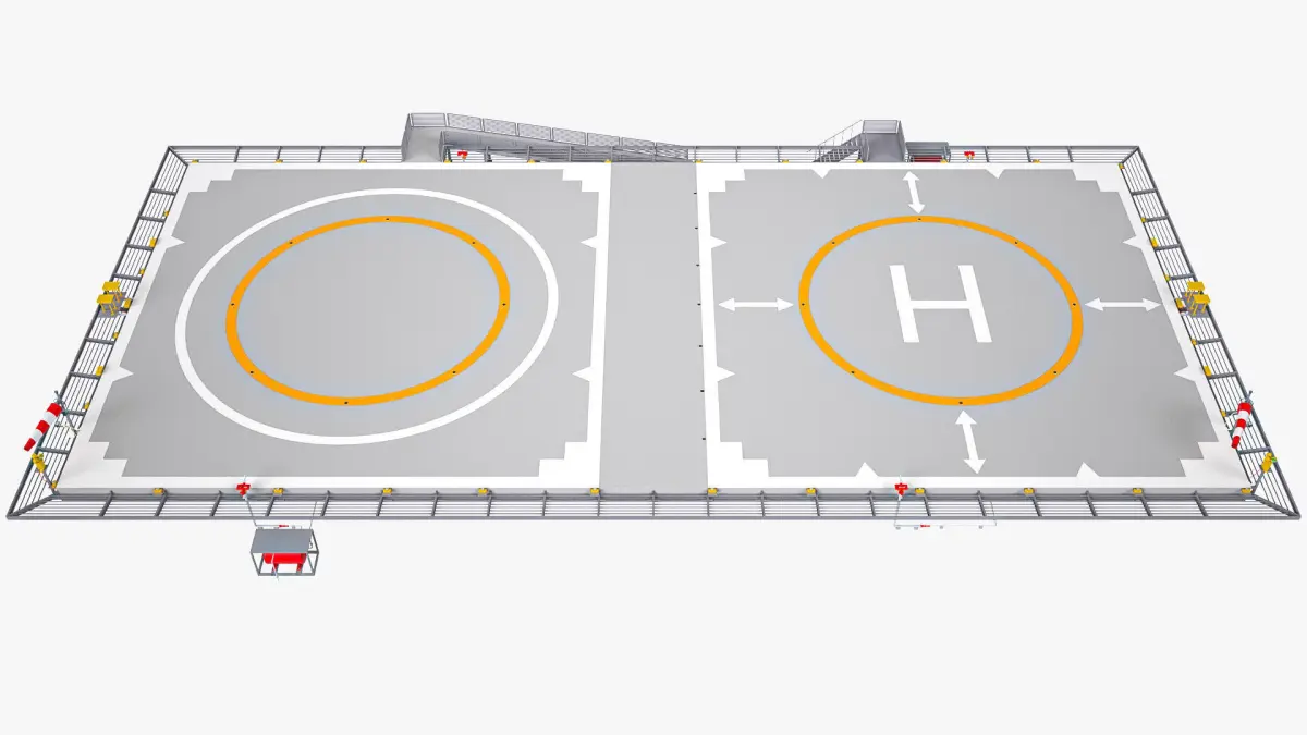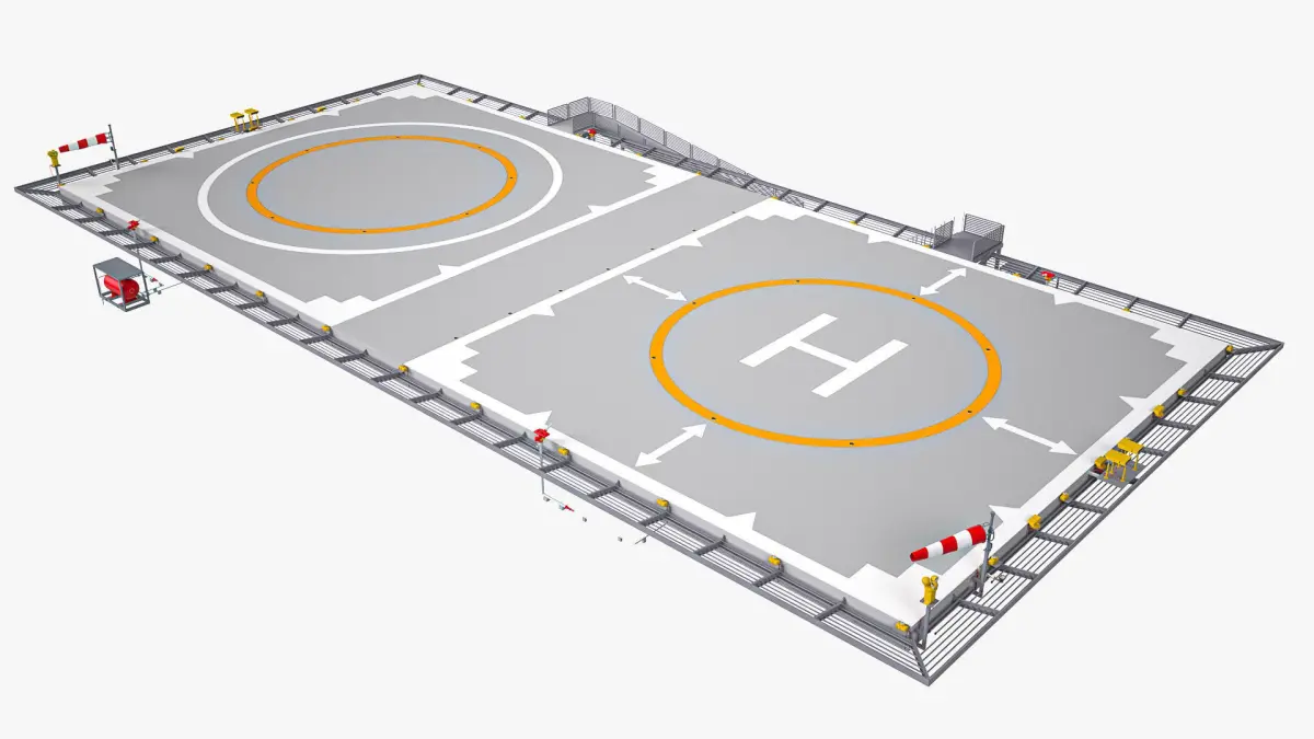 Detailed 3D model of a Dual Heliport, modeled in Cinema 4D and rendered with V-Ray 5. The model was created using approximate real world dimensions.