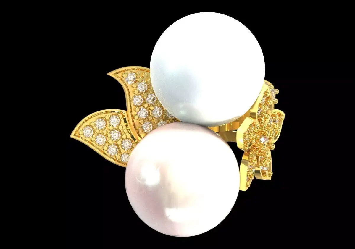 - Main role: Two Large Round Pearls with high shine, are positioned as the main and voluminous elements on either side of the flower motif.