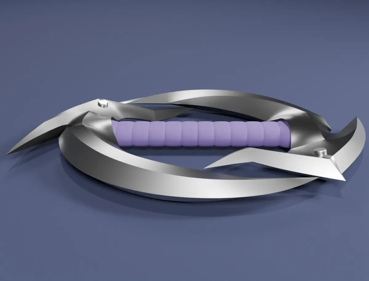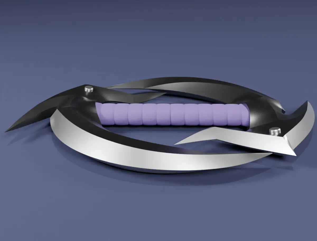 Introducing a unique 3D model of a fantastical combat weapon – a dual sickle-shaped blade, crafted with high detail and optimized for use in various projects. This is a chakram with two scythe-like blades, but you can call it whatever you like: Shadow Claw, Fate Ripper, Infinity Blade, Moon Hook, Predator Sickle, Devil’s Reckoning, Rift Ring, or Black Storm. But its true name is Dual Sickle.