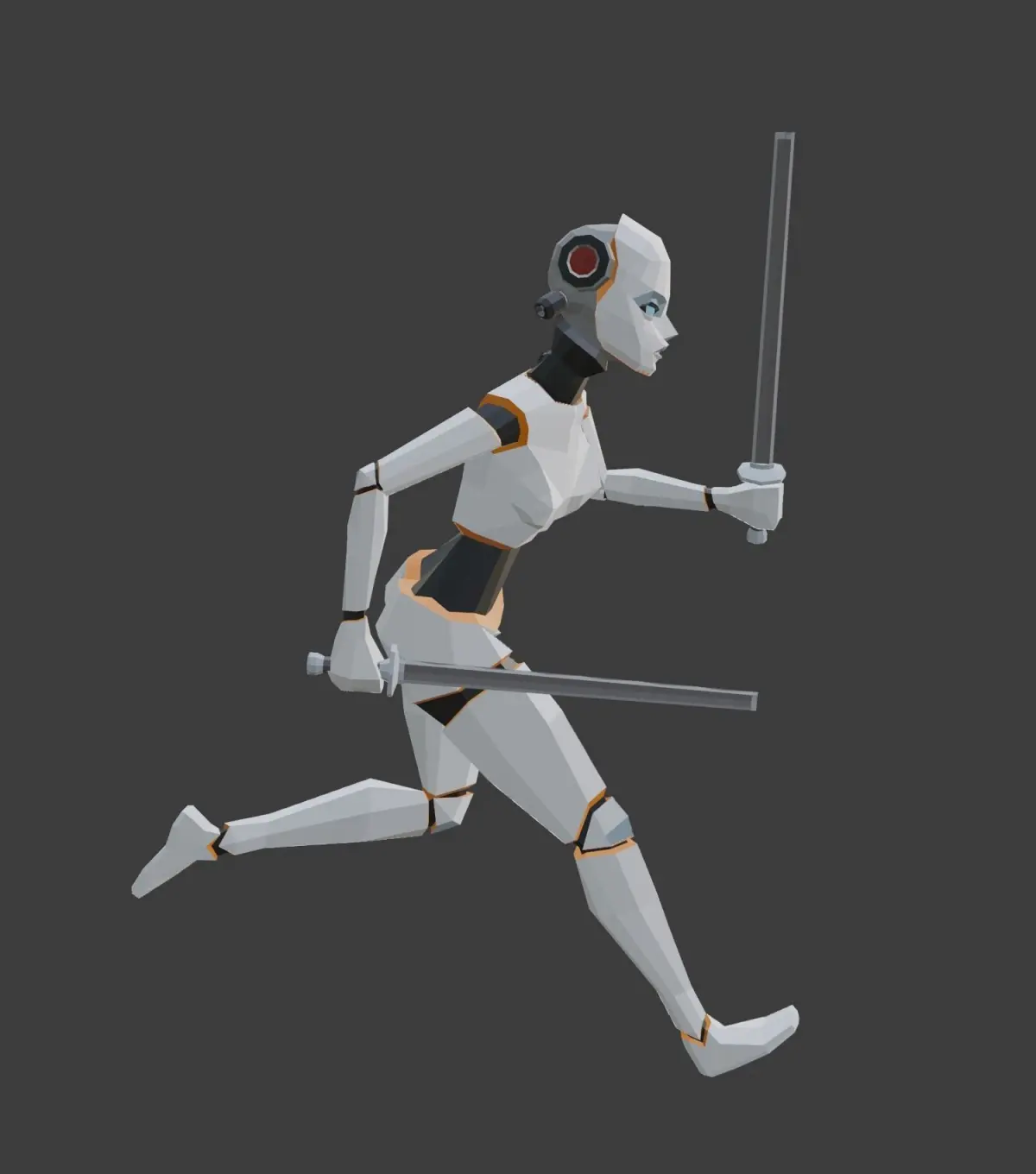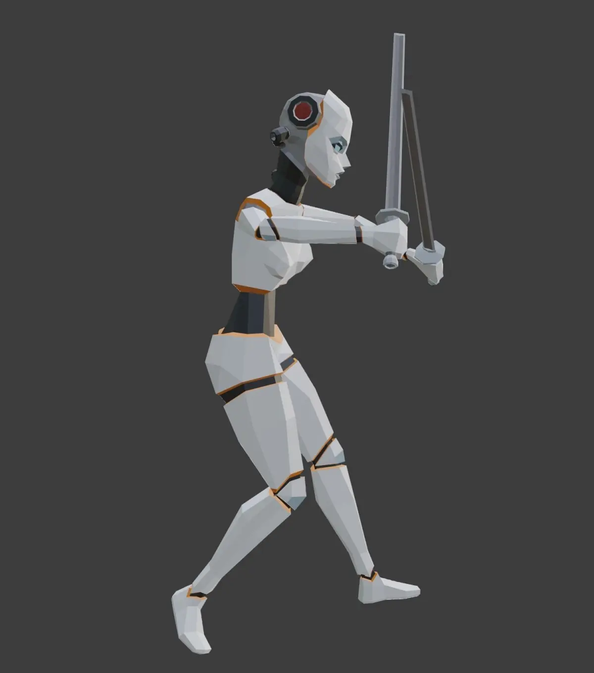 Old-School sytled, ultra-low polygon female combat cybrog.