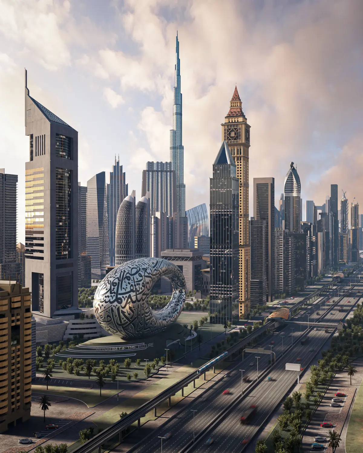 -Dubai skyscraper with High detailed model of shaikh zayed road and dubai downtown area.