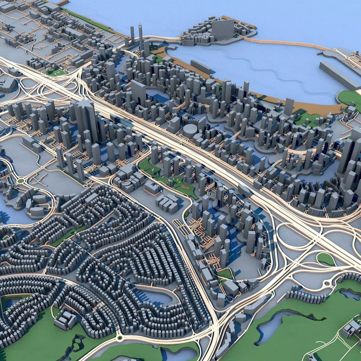 The .ZIP folder contains separate .STL files – buildings, water, vegetation, base etc.