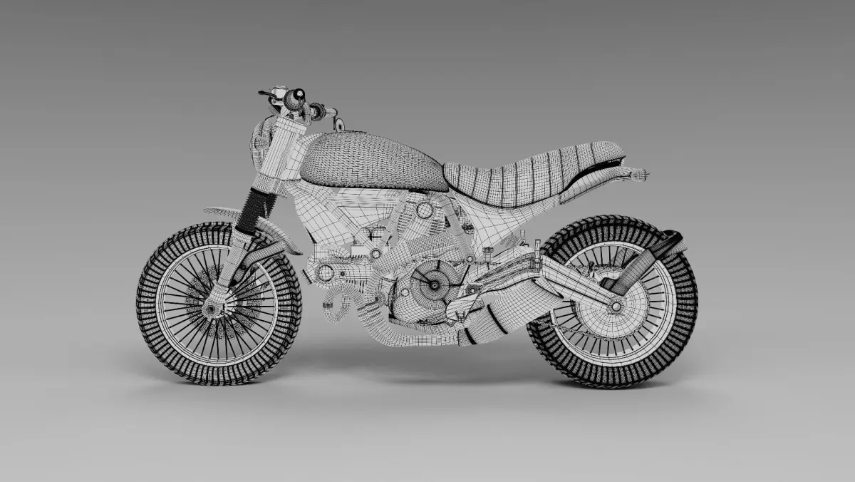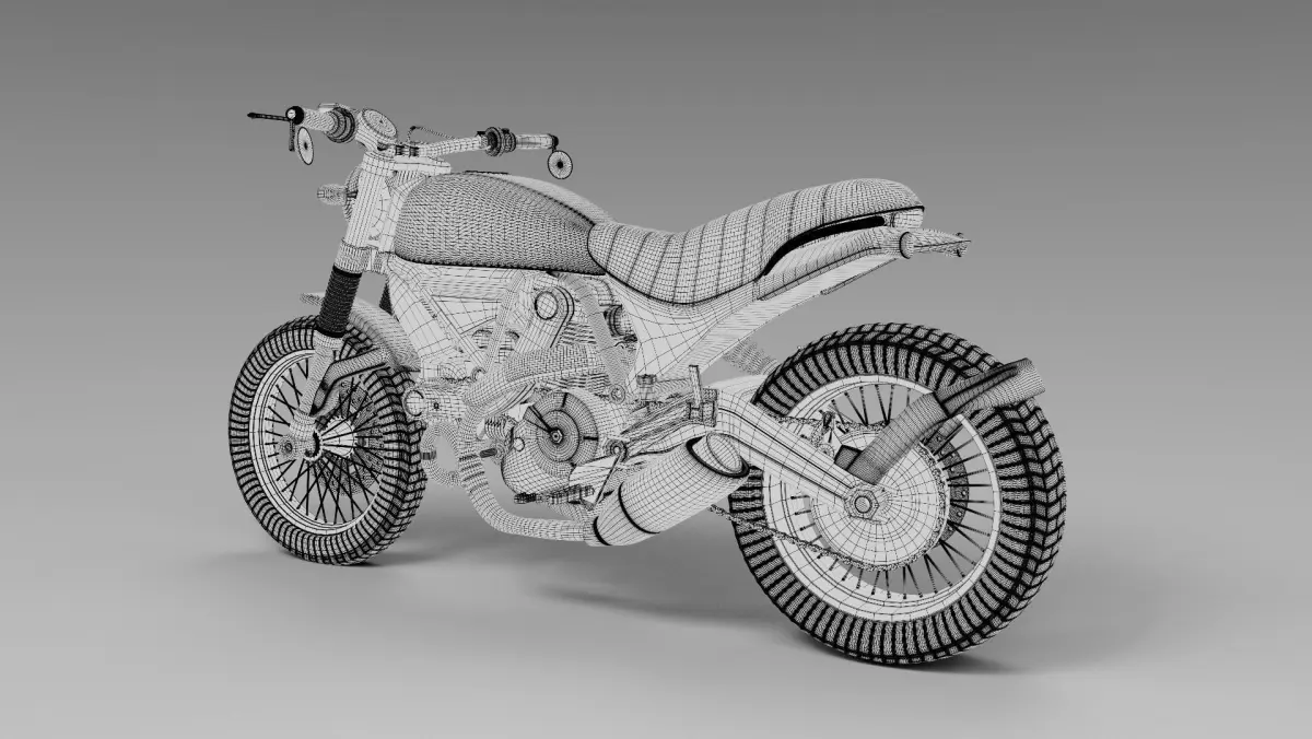 This Ducati Scrambler Cafe Racer is a high quality model. The bike has a fully textured, detailed design that allows for close-up renders.