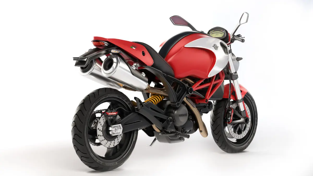 Detailed model of a modern Ducati sports bike, model - Monster 796. The details of the chassis, suspension, leather seats, controls, lighting and attachments have been worked out. The model can be used for close-up shots.