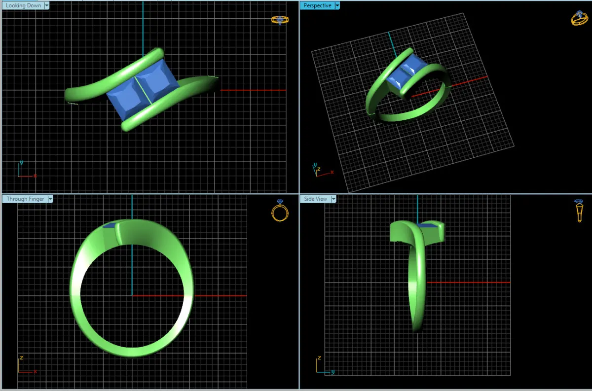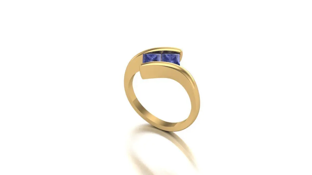 At the heart of this ring are two princess-cut gemstones. The princess cut, renowned for its sharp, clean lines and square shape, is a popular choice for those who appreciate modern sophistication. These gemstones are celebrated for their exceptional brilliance and fire, rivaling that of round brilliant-cut diamonds. The square shape of the princess cut offers a unique and striking visual appeal, setting this ring apart from more traditional designs.