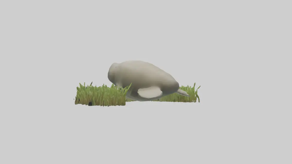 A highly detailed 3D model of a dugong grazing on seagrass, perfect for marine life simulations, educational projects, or underwater scenes. Available file formats: FBX, OBJ, STL, GLB, USDZ, BLEND.
