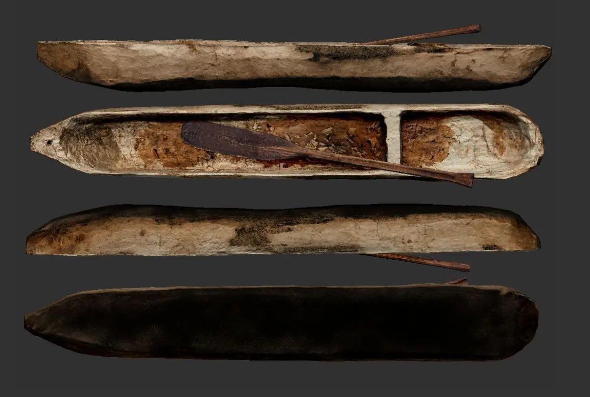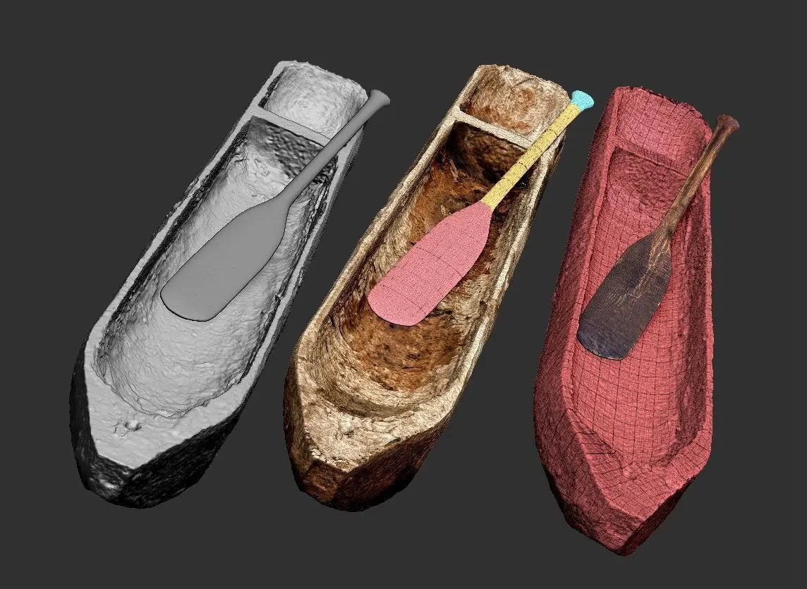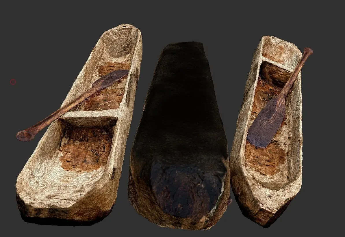 Dugout canoe + oarA dugout canoe or simply dugout is a boat made from a hollowed tree. Other names for this type of boat are logboat and monoxylon.https://en.wikipedia.org/wiki/Dugout_canoe