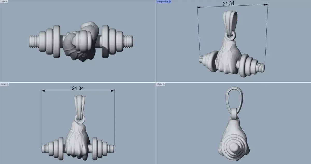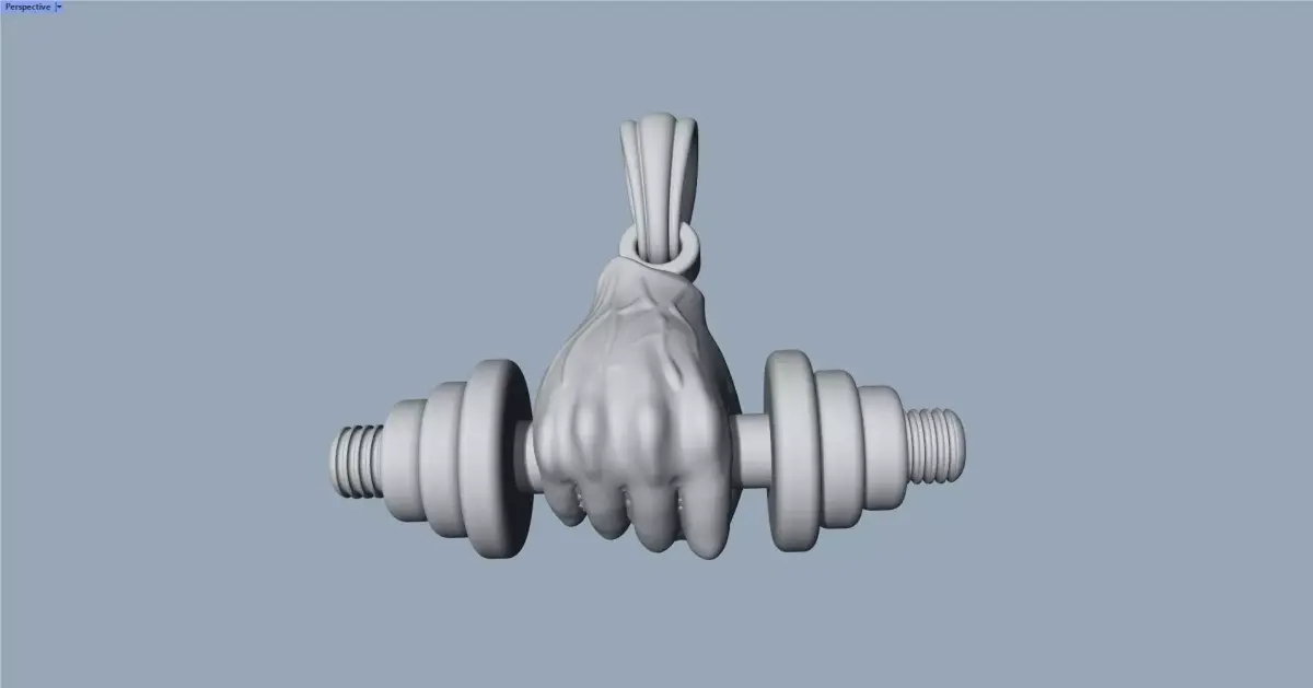 Closed fist dumbbell pendant, scalable and ready for 3D printing.