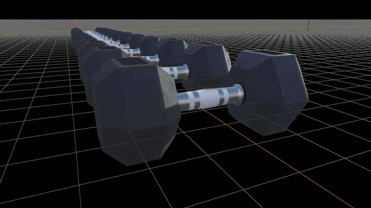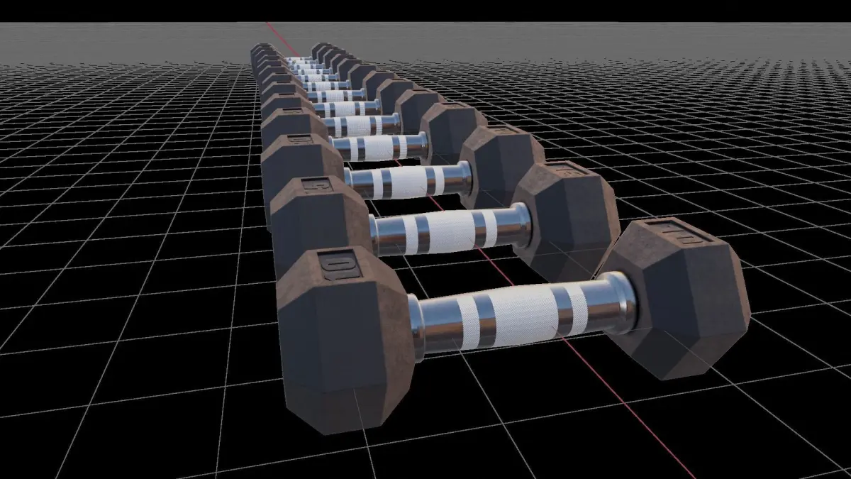 Dumbbells with procedural material.