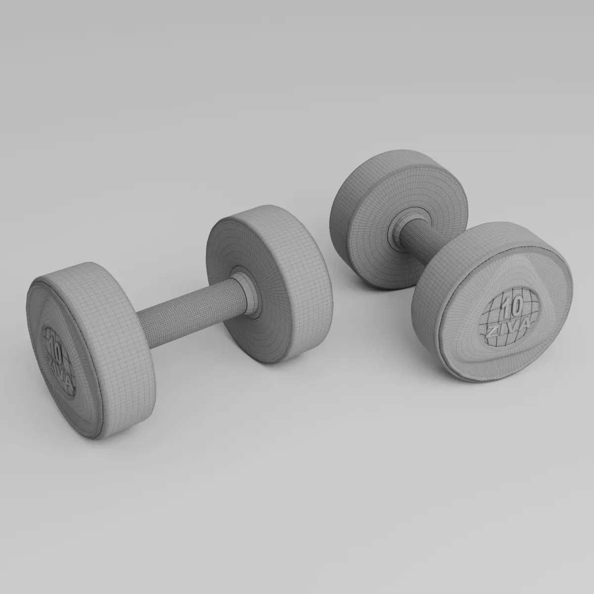 Large solid steel headsGrooved urethane handles with 34mm grip.Name: DumbbellsVersion: 2017Preview: NoUnits: MillimetersDimension: 593.01 x 166.19 x 165.92Polys: 103 681XForm: NoBox Trick: YesModel Parts: 47Render: CoronaFormats: 3Ds Max 2017, FBX, 3DS