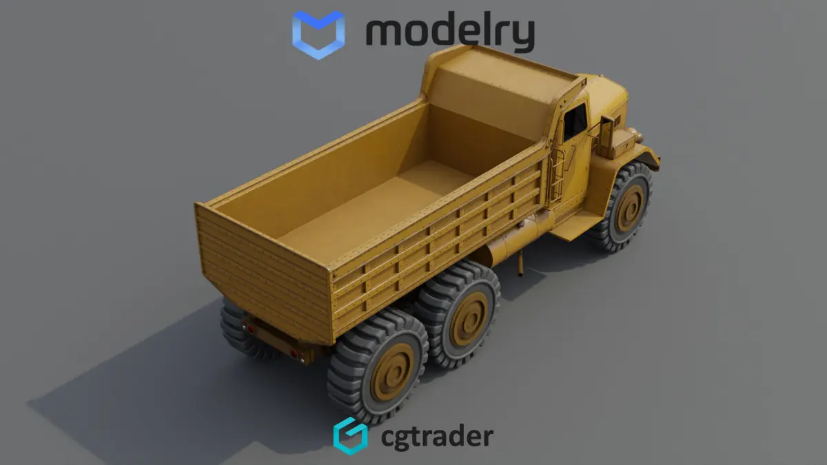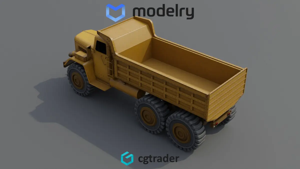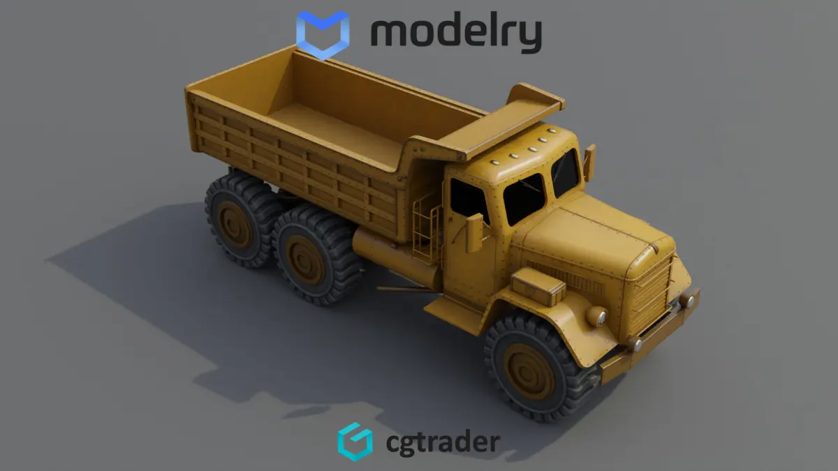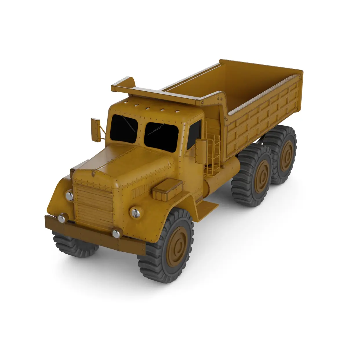 A specialized historical dump truck built for heavy-duty construction tasks, boasting a robust and durable construction. The vehicle's body is painted in a faded yellow color, with patches of rust and wear adding character to its appearance. Its massive tires are designed to withstand the toughest of terrains, while the hydraulic lifting mechanism at the back enables efficient unloading of materials. The interior of the cab is basic yet comfortable, providing the driver with a functional workspace for long hours of operation.