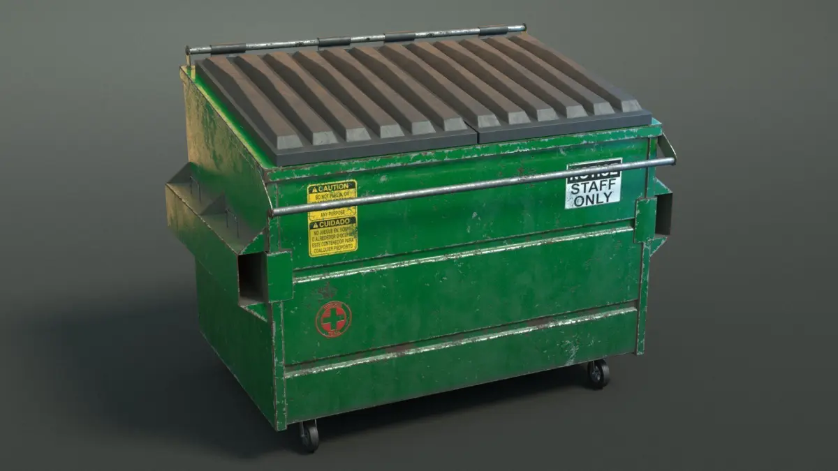 3D Realistic dumpster model, a cool trash container game-ready, PBR rendered with V-Ray next. More formats are available. All textures and files included. If you don't use V-Ray, change the materials and beware that the normal axis for V-Ray is not the same so you have to convert it. Enjoy!