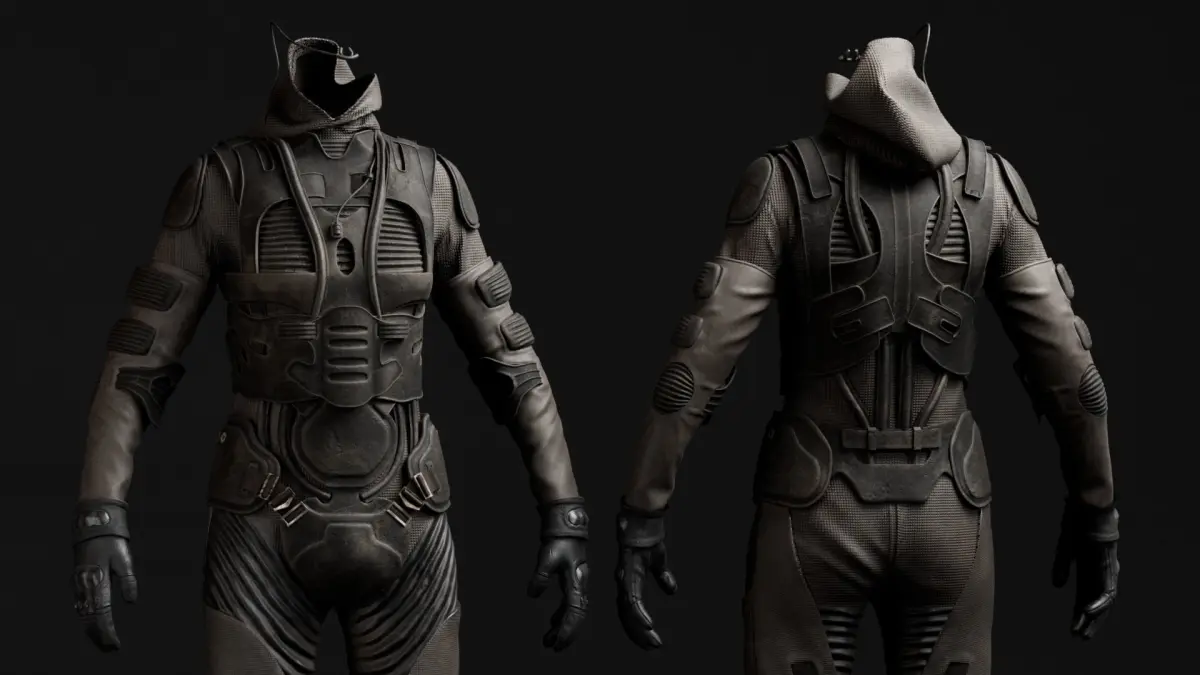 Fremen's stillsuit from Dune and Dune part 2. For vfx and video games with subdivisions and displacement.Ready to render on maya and with a simple rig to move the main bones, compatibility with a wide range of software platforms and pipelines.