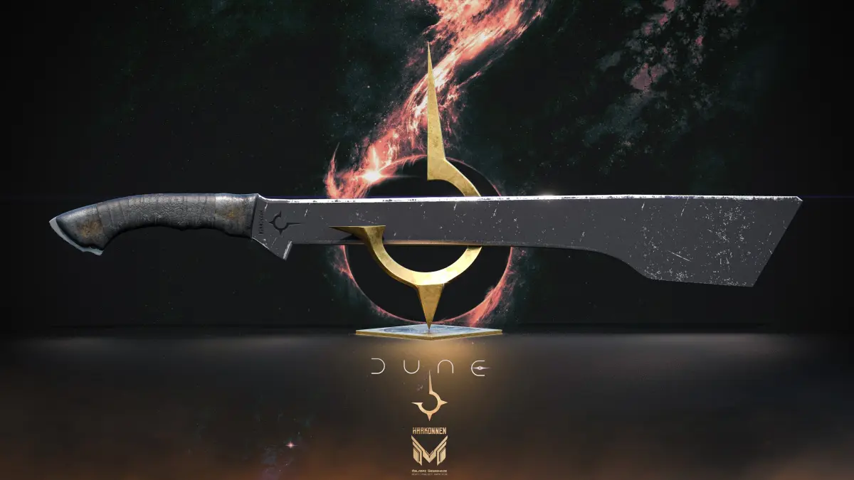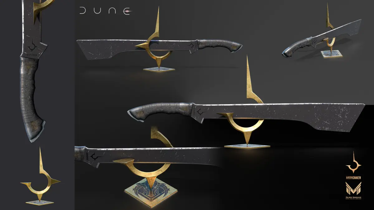 Dune is a 2021 American epic science fiction film directed by Denis Villeneuve and written by Villeneuve, Jon Spaihts, and Eric Roth. It is the first of a planned two-part adaptation of the 1965 novel by Frank Herbert, primarily covering the first half of the book. House Harkonnen, enemy to House Atreides, and former steward of Arrakis.DUNE Sword Collection 2 in 1Name: DUNE Sword of HARKONNEN'sUnits: Metric (millimeters)Dimension: 1636 x 636 x 317Polys: 45 603Verts: 46 081Mtl: PBRUnwrap: YesModel Parts: 6Formats: 3Ds Max 2016, FBX, OBJ