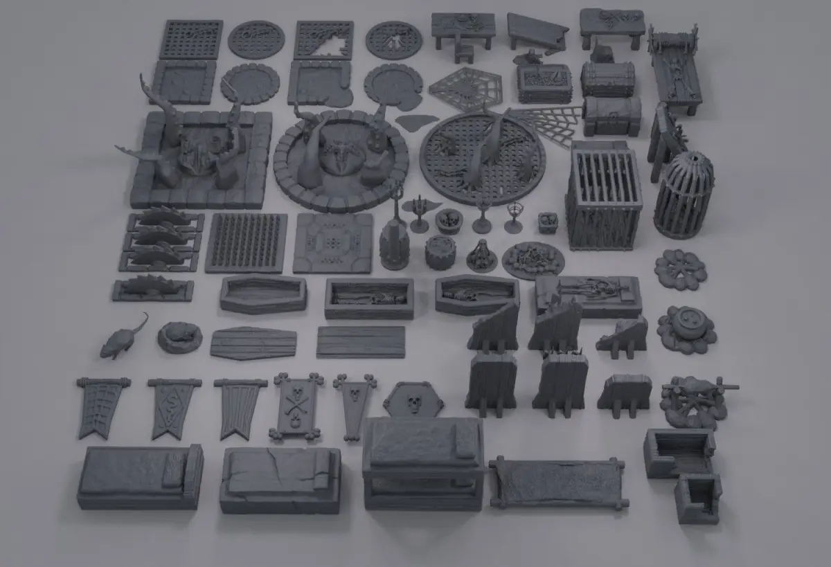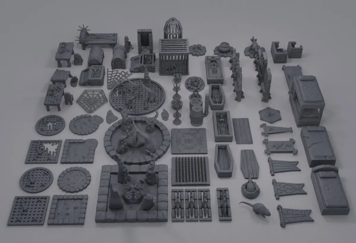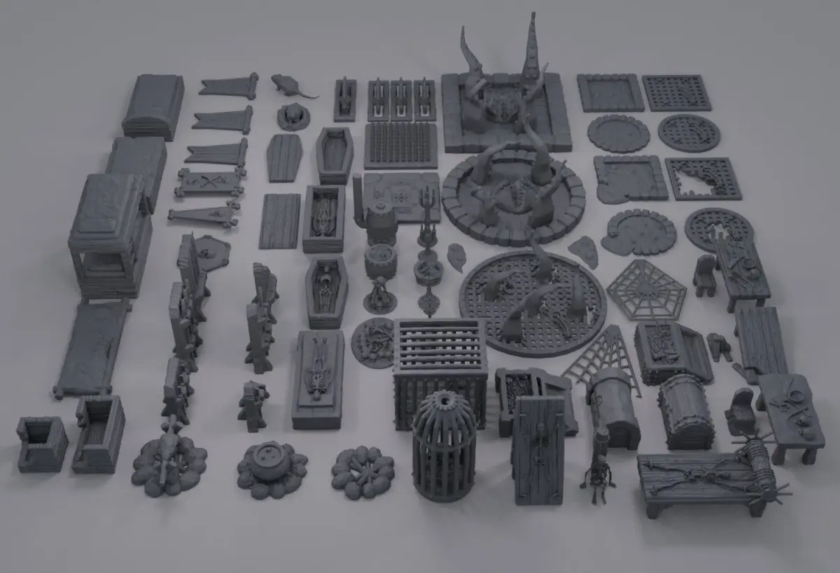 Dungeon Environment Pack Adjusted to 28 mm miniatures Inside can be playable FDM Print preferred (Gray good ) No need to slice adjusted to Ender 3 pro v2 standarts