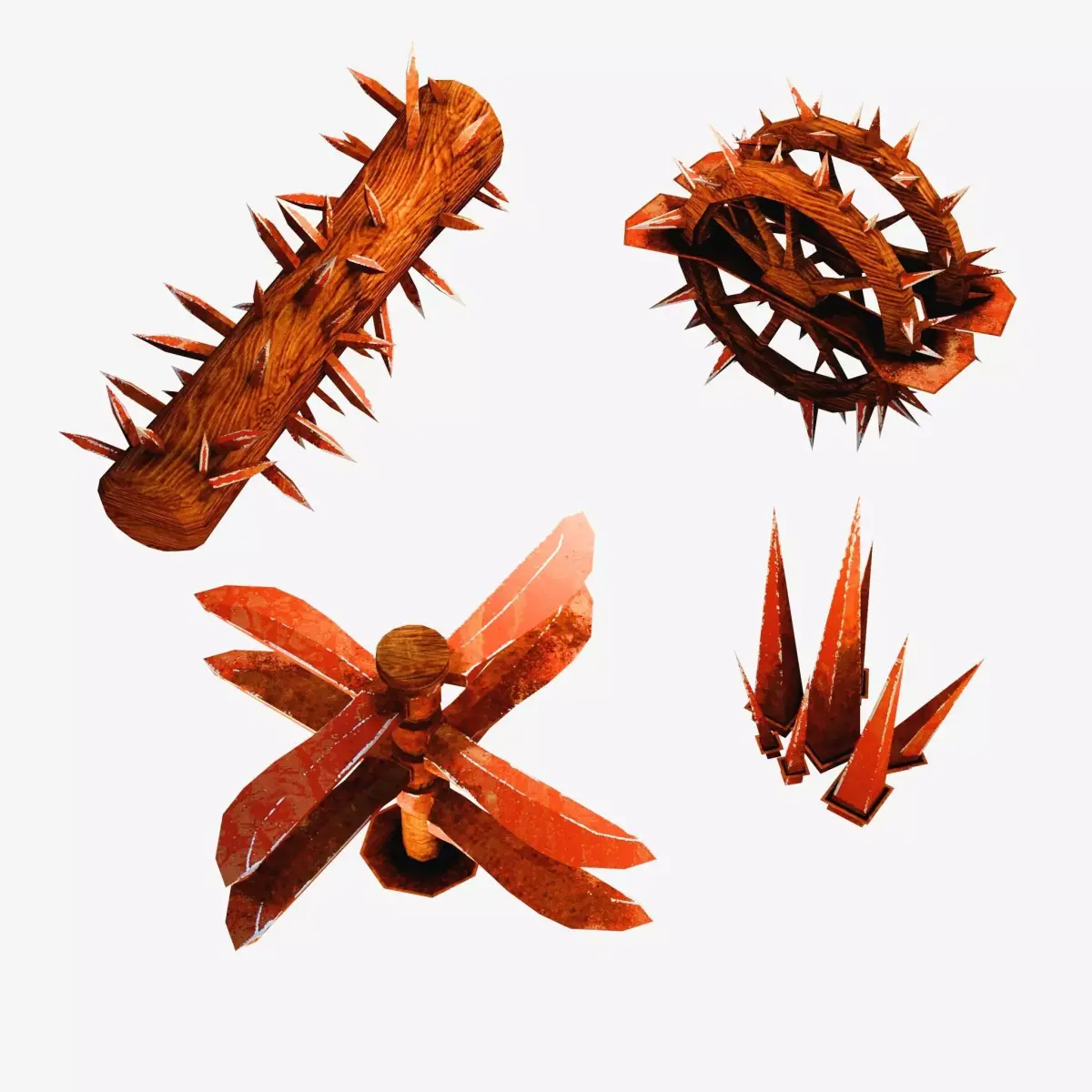 4 animated low poly Traps for tile-based game.1x1, 1x2, 1x3, 2x2 tiles sized traps.