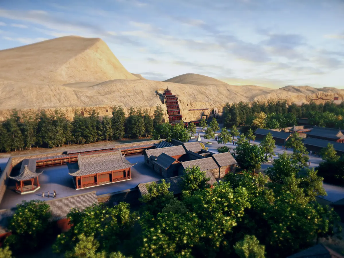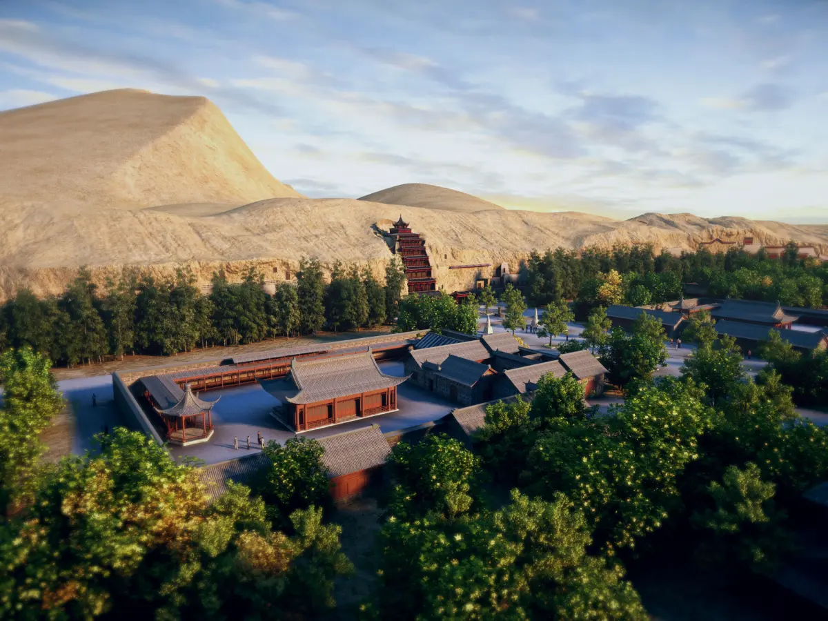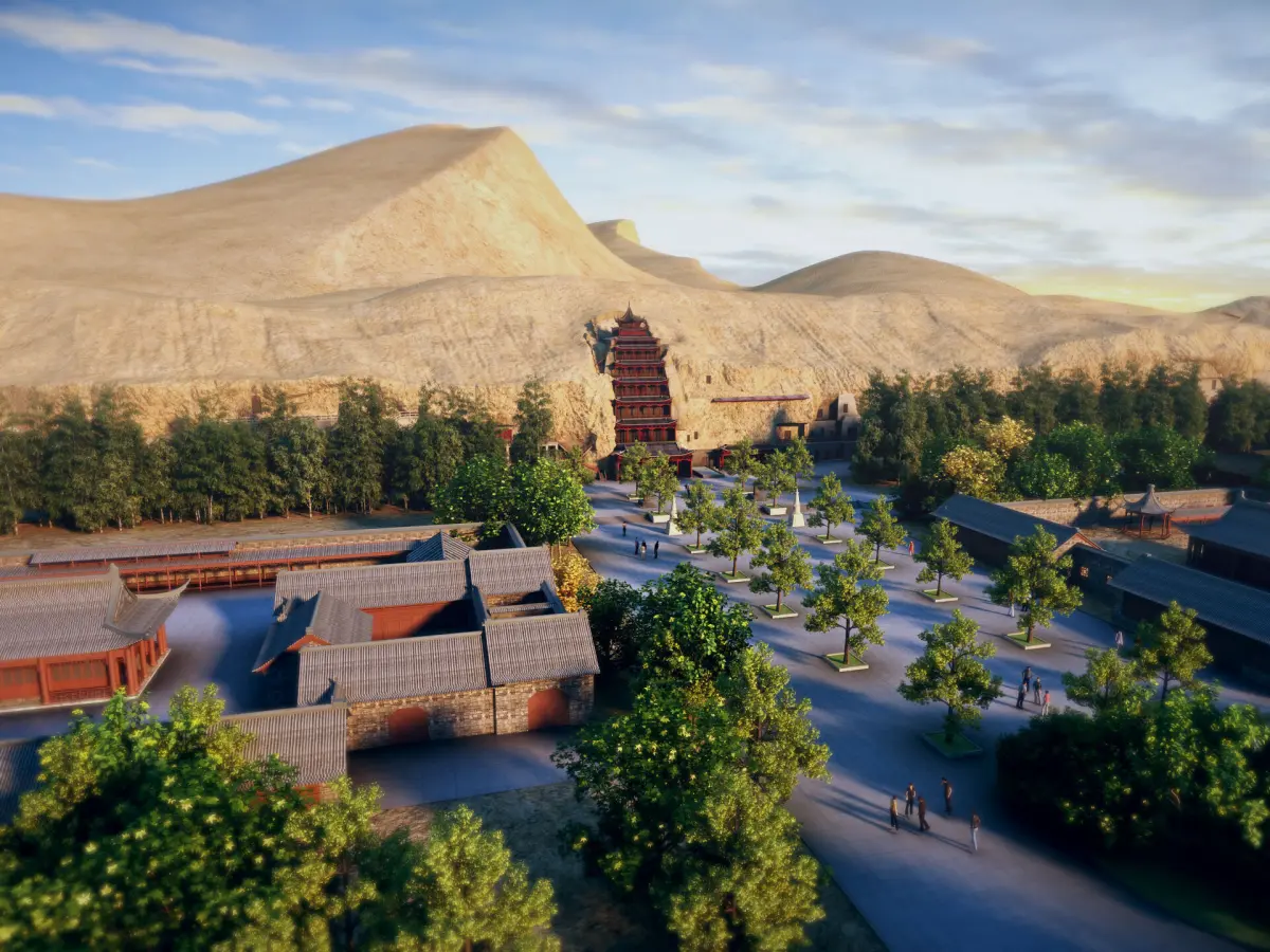 The Mogao Caves are located at the western end of the Hexi Corridor in Dunhuang. Its excavation lasted for about 1000 years from the Sixteen Kingdoms period to the Yuan Dynasty, which is unparalleled in Chinese grottoes. It is not only a brilliant artistic treasure trove of ancient Chinese civilization, but also an important witness to the dialogue and exchange between different civilizations that occurred on the ancient Silk Road. The Mogao Grottoes currently have 735 caves, with over 45000 square meters of preserved murals, more than 2400 colored sculptures, and 5 wooden eaves from the Tang and Song dynasties. It is a microcosm of the development and evolution of Chinese cave art and enjoys a high historical position in cave art. Painting and sculpting Buddha statues and scriptures inside the cave serve as places for Buddhist disciples to practice, observe, and worship. Dunhuang Grottoes are a three-dimensional art that combines architecture, sculpture, and murals. The caves are divided into two zones: the 492 caves in the southern zone are places for Buddhist activities in Mogao Grottoes, while the 243 caves in the northern zone are mainly residential areas for monks and craftsmen, with facilities for practice and living such as earthen kang pits, flues, niches, lamp stands, etc., but most of them do not have colored sculptures or murals. [2] The name Dunhuang Grottoes is usually used to refer to the Mogao Caves, which is a general term for the Mogao Caves, Xiqianfo Caves, and sometimes also includes the Yulin Caves in Anxi. The Dunhuang Grottoes, along with the Yungang Grottoes in Datong, Shanxi and the Longmen Grottoes in Luoyang, Henan, are collectively known as the three major grottoes in China.Model making software: 3ds Max 2014 Rendering software: vray3.60.03 for 3dmax2014 Note: The tree planting plugin is used in the scene:MultiScatter1.20.12for 3dmax2014There are various layers of buildings in the scene of the 3ds Max file, making it convenient for users to choose according to their needs. be careful: FBX The file does not include trees and dynamic characters planted by plugins. If you need characters and trees, please use 3 dsmax2014 Open and use it with a higher version.