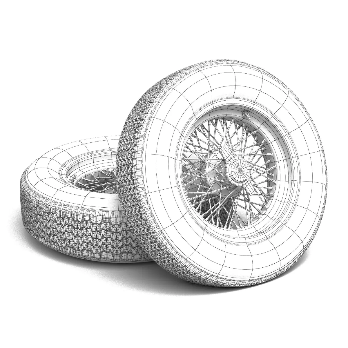 Four car wheels - Dunlop CR 48 tires with Borrani rims.