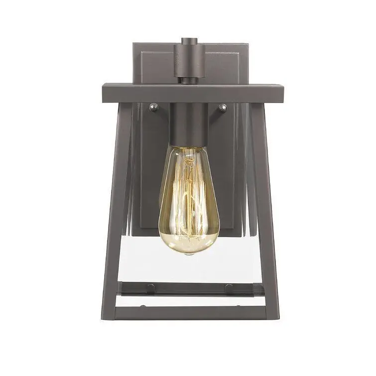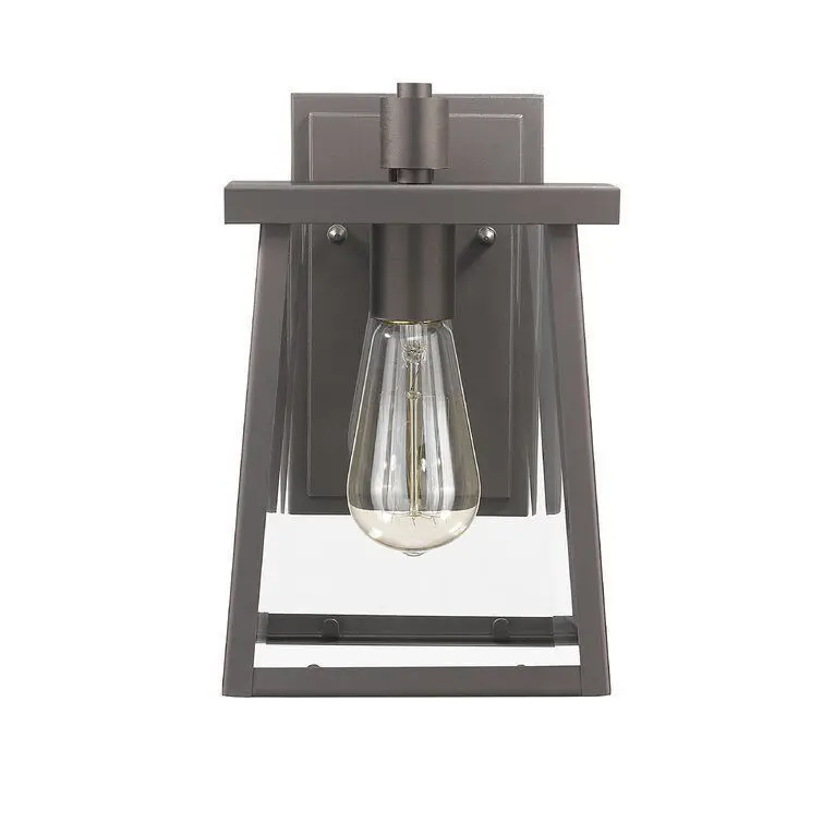 - This Transitional Outdoor Wall Lantern features a textured black finish that will complement many transitional decors. The clean lines of the steel frame adds interest while the clear glass panels provide uninterrupted light for your outdoor decor.
