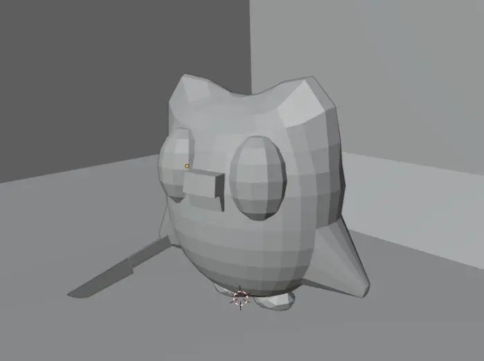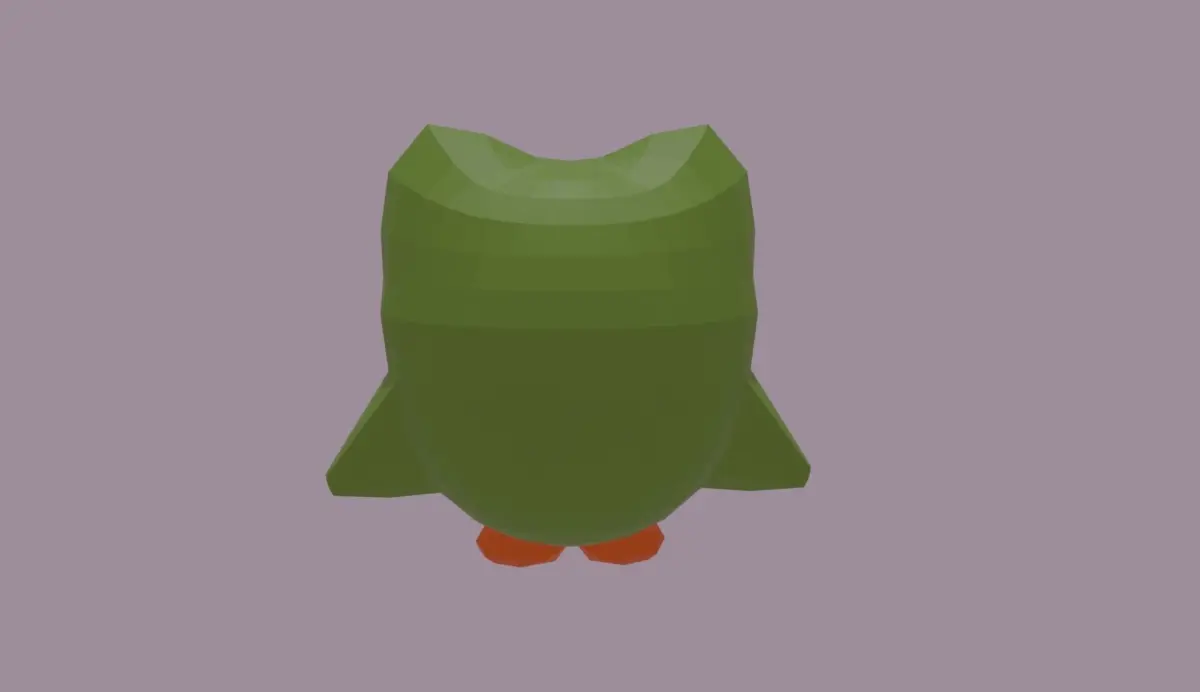 Duolingo mascott Duo with knife. Low poly model, 963 faces. Without skeleton. Can be used in animation or like decoration. Very simple model, wihout textures, colored just with material assigning.