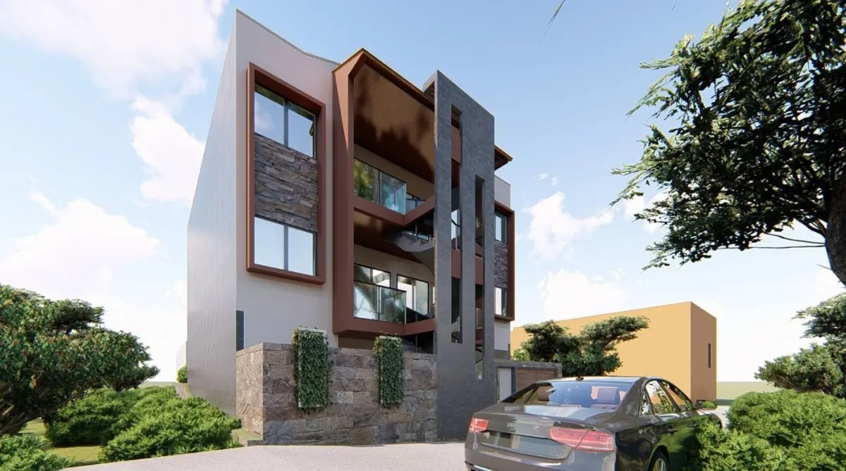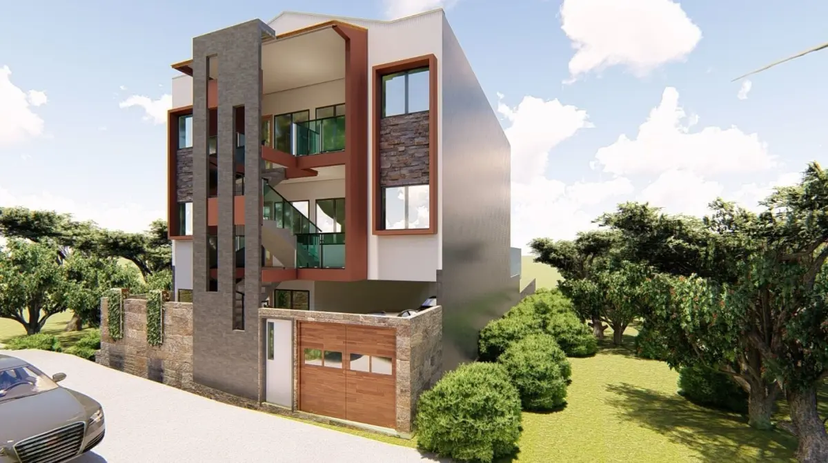 HomeCatalogDUPLEX 2 modern house with car parked 3D model