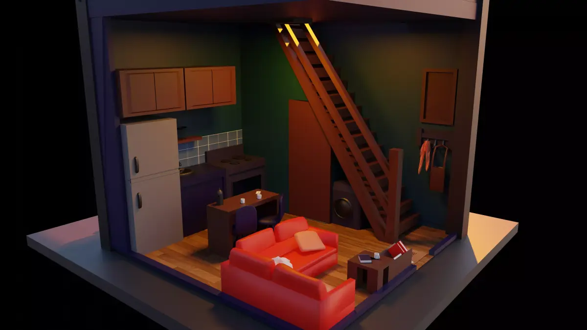 A fully modeled and simply textured contemporary duplex apartment, ready for your visualizations. This detailed interior includes all major architectural elements: two floors, internal staircase, kitchen, bathroom, and open-plan living areas. Perfect for architectural visualization, game development (as a static environment), or virtual reality projects. Clean mesh topology and organized scene structure make it easy to modify and integrate.