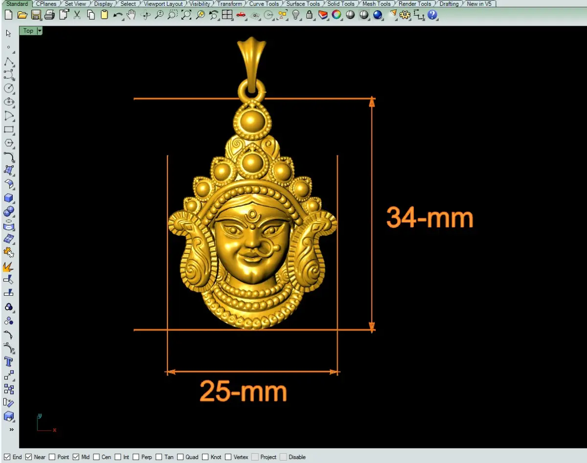 This is a jewelry CAD file or 3dprint stl file. For jewelry CAM and casting. Model name is :- ” Durga Mata Pendant File “. This file is for jewelry manufacturing company or other 3D printing ornaments manufacturing company. We can use this model as a Jewelry Pendant, Necklace center piece, Earrings, Rings center piece, Showpiece or other purpose. This Durga Mata file is ready for jewelry CAM and casting or any type of 3D-printing. You can find all details of the product in product image. I give you (stl, 3dmstl and obj ) file format in zip file.
