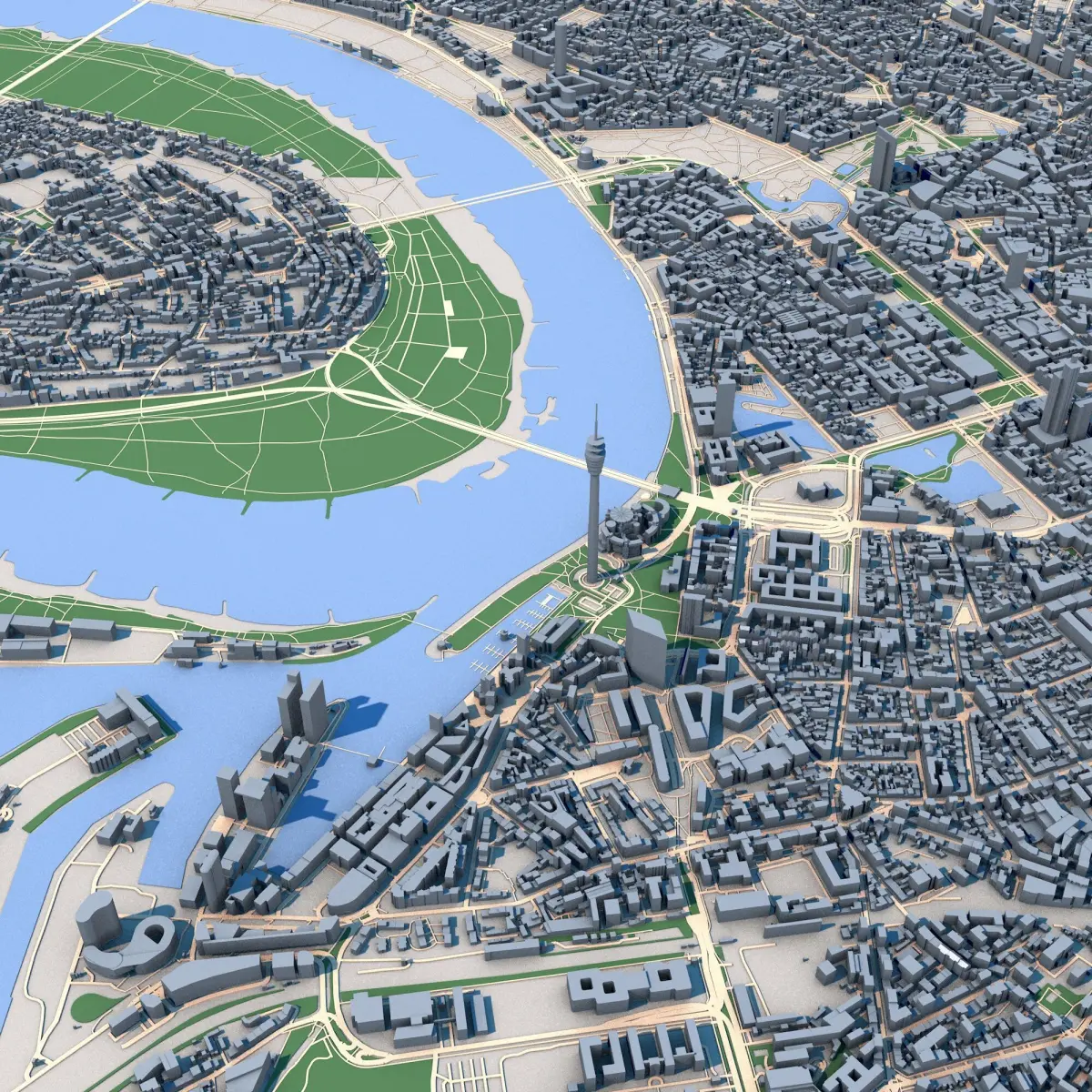 Düsseldorf City Germany Map 3D Model