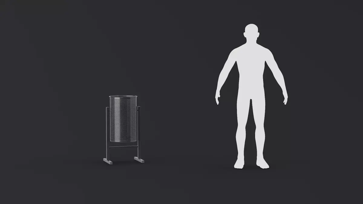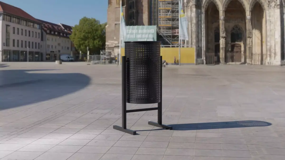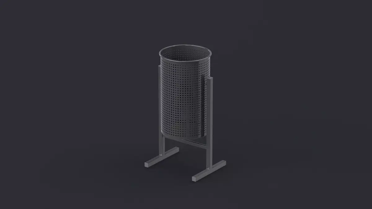 Trash Can Outdoor Metal 02. U-stand mount. Modern urban outdoor enviroment