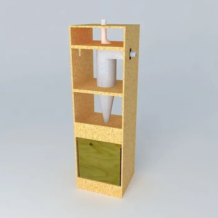 This 3D model was originally created with Sketchup 8 and then converted to all other 3D formats. Native format is .skp 3dsmax scene is 3ds Max 2016 version, rendered with Vray 3.00 Project design adaptation presented in issue 13 of the magazine ShopNotes. The structure is MDF 15 mm, and the collection box is compensated 6 mm. The cylinder and the cone were sized according to the measurement chart found in a Portuguese site.