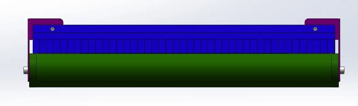 The DustBuster Conveyor Cleaner works by using a brush attachment that is fixed to the conveyor belt using sheet metal components. The brush is designed to remove dust and debris from the surface of the conveyor belt, ensuring that the products being transported remain clean and dust-free.