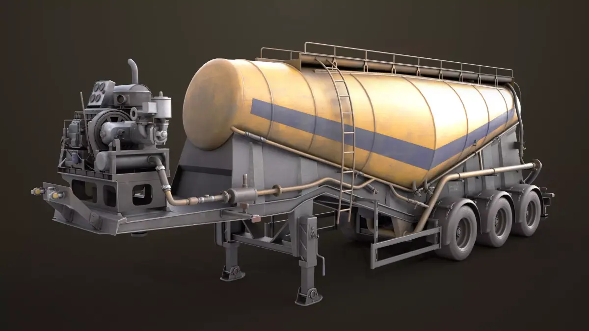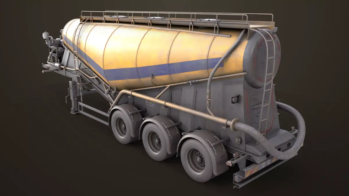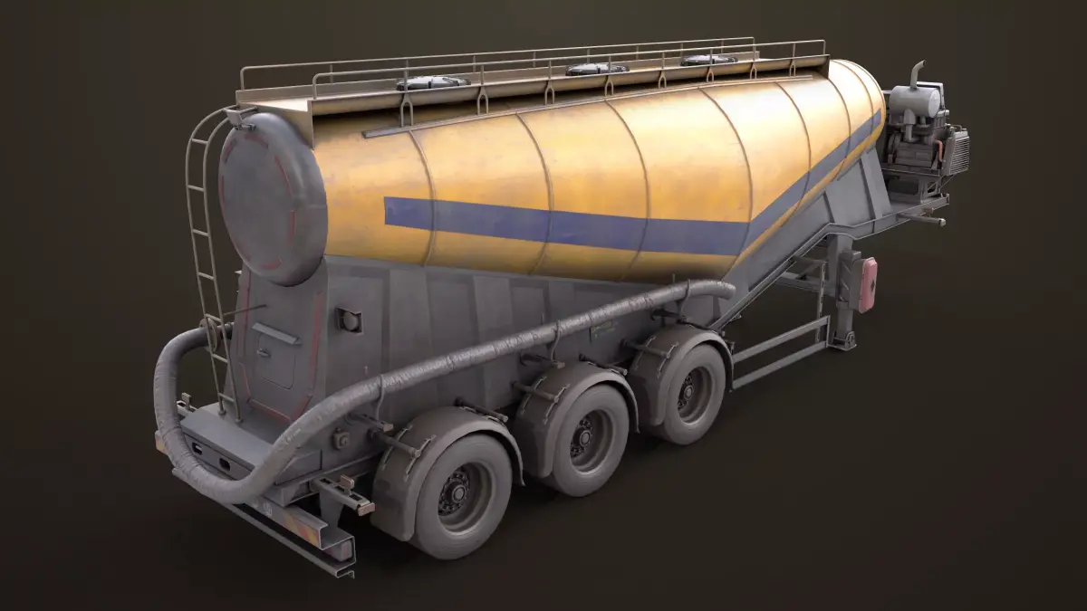 The Photorealistic 3D model of Dusty Cement Trailer Yellow 01 Single Material, This model is suitable for any visual production - broadcast, high-res film close-ups, advertising, games, design visualization, forensic presentation, etc,.