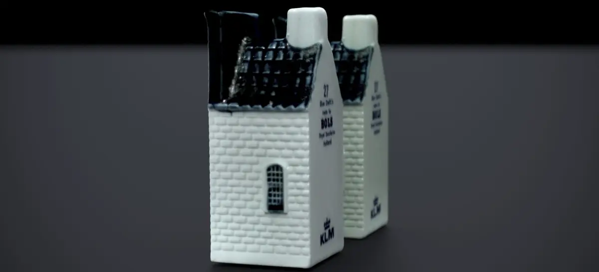 PRODUCT BRIEF DESCRIPTION: This is a typical Dutch home replicated in a Dutch tradition delft ceramic craft for display or showcase. This is a Dutch delft house No. 27 for KLM.
