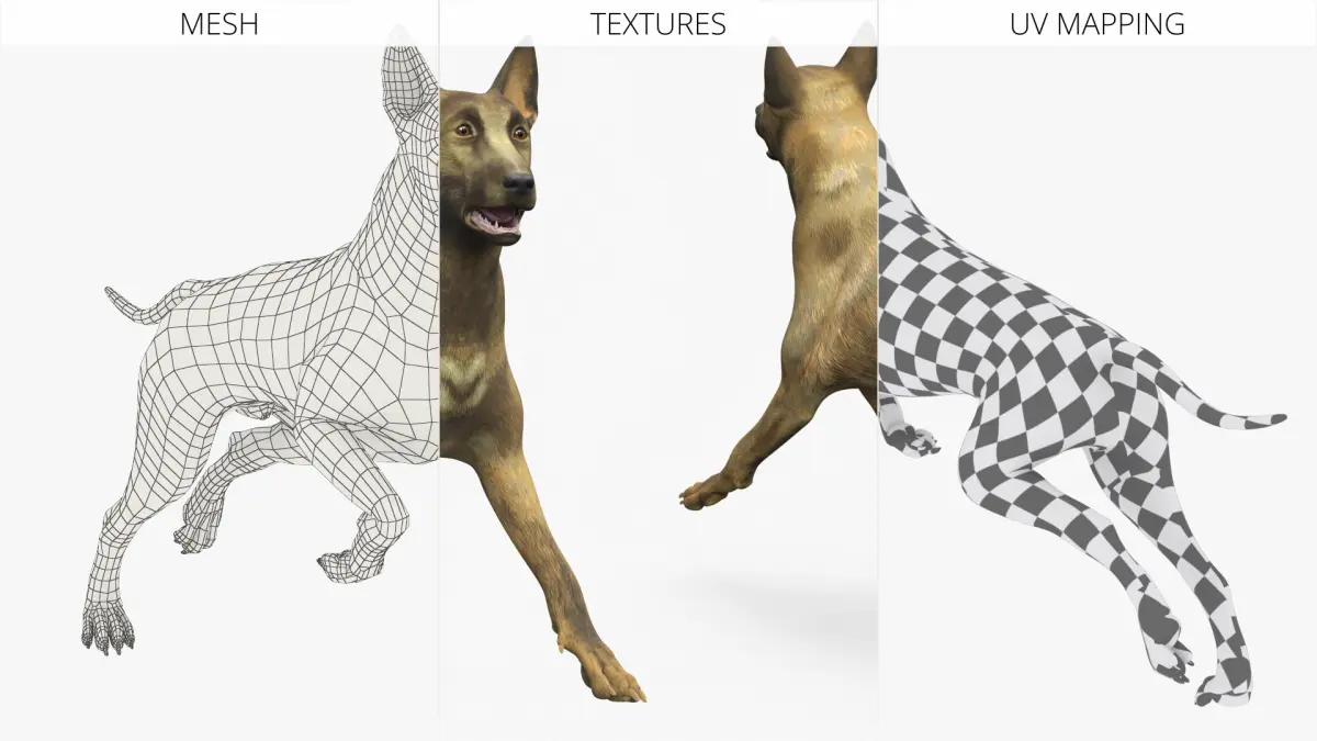 Dutch Herding Dog in Run Pose Gold Brindle is a high quality, photo real 3d model that will enhance detail and realism to any of your rendering projects. The model has a fully textured, detailed design that allows for close-up renders, and was originally modeled in 3ds Max 2020 and rendered with V-Ray. Renders have no postprocessing!