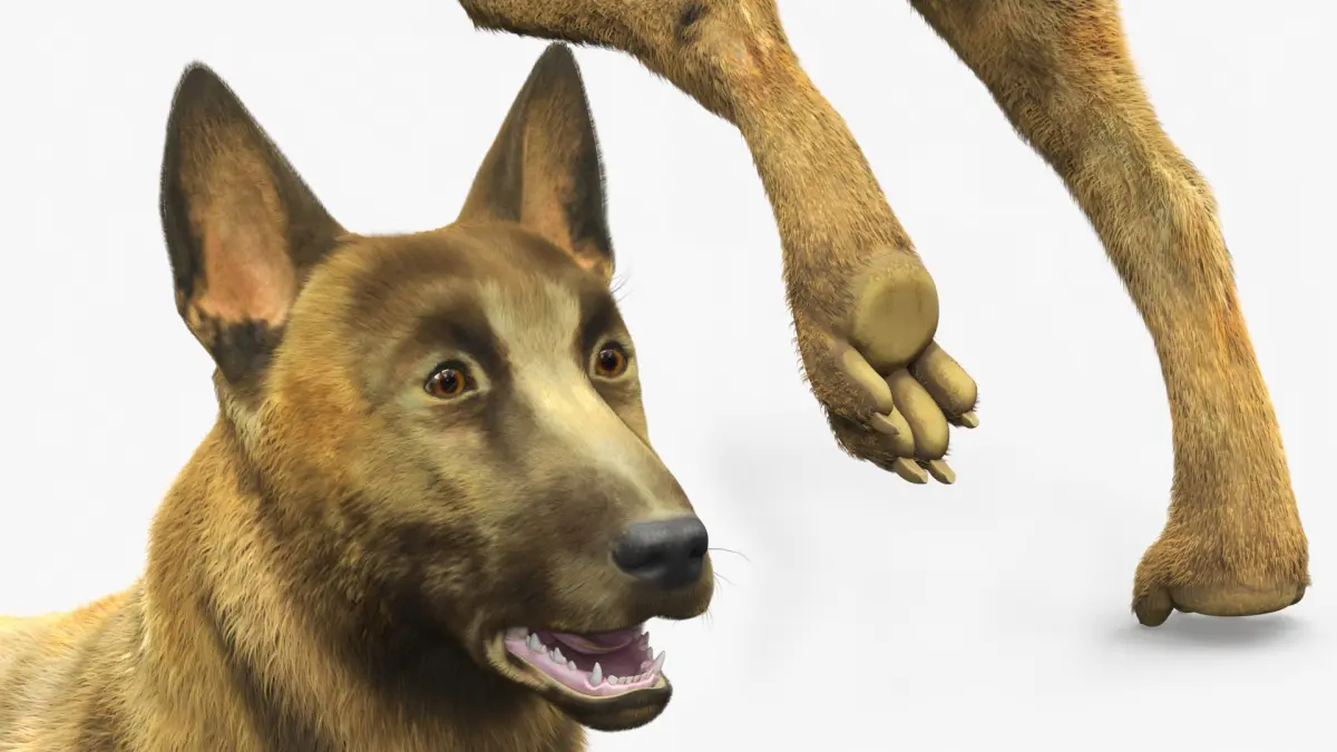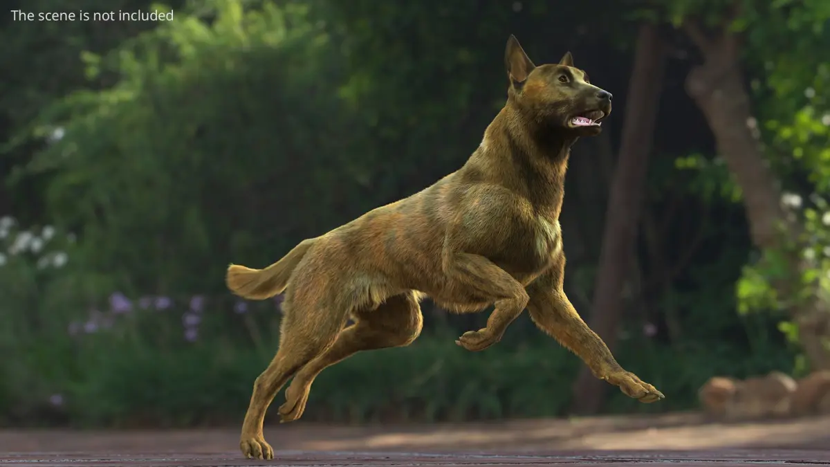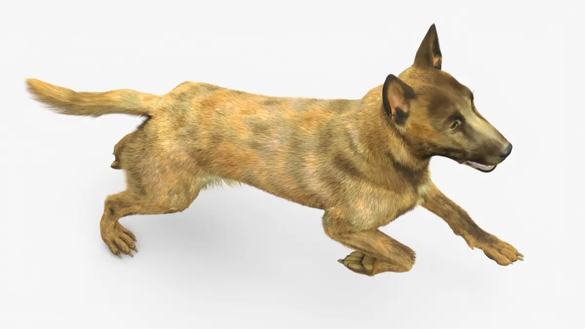 Dutch Herding Dog in Run Pose Gold Brindle Fur is a three-dimensional model of Dutch shepherd, that is a medium-sized herding dog breed known for its intelligence, agility, and versatility.