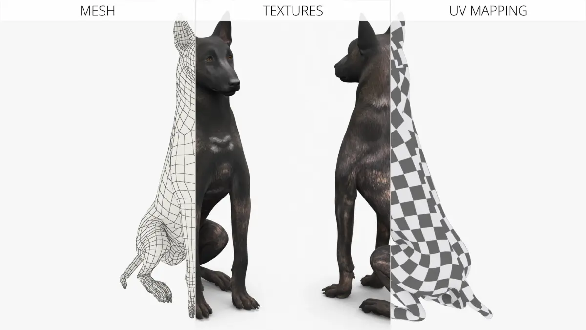 Dutch Shepherd Dog Sitting is a high quality, photo real 3d model that will enhance detail and realism to any of your rendering projects. The model has a fully textured, detailed design that allows for close-up renders, and was originally modeled in 3ds Max 2020 and rendered with V-Ray. Renders have no postprocessing!