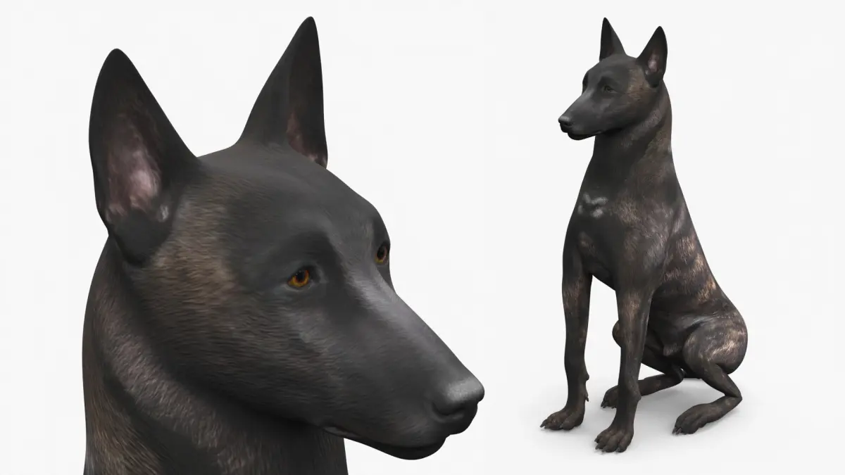 Dutch Shepherd Dog Sitting is a three-dimensional model of Dutch shepherd, that is a medium-sized herding dog breed known for its intelligence, agility, and versatility.