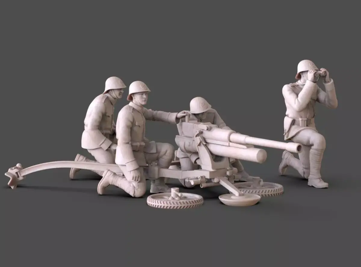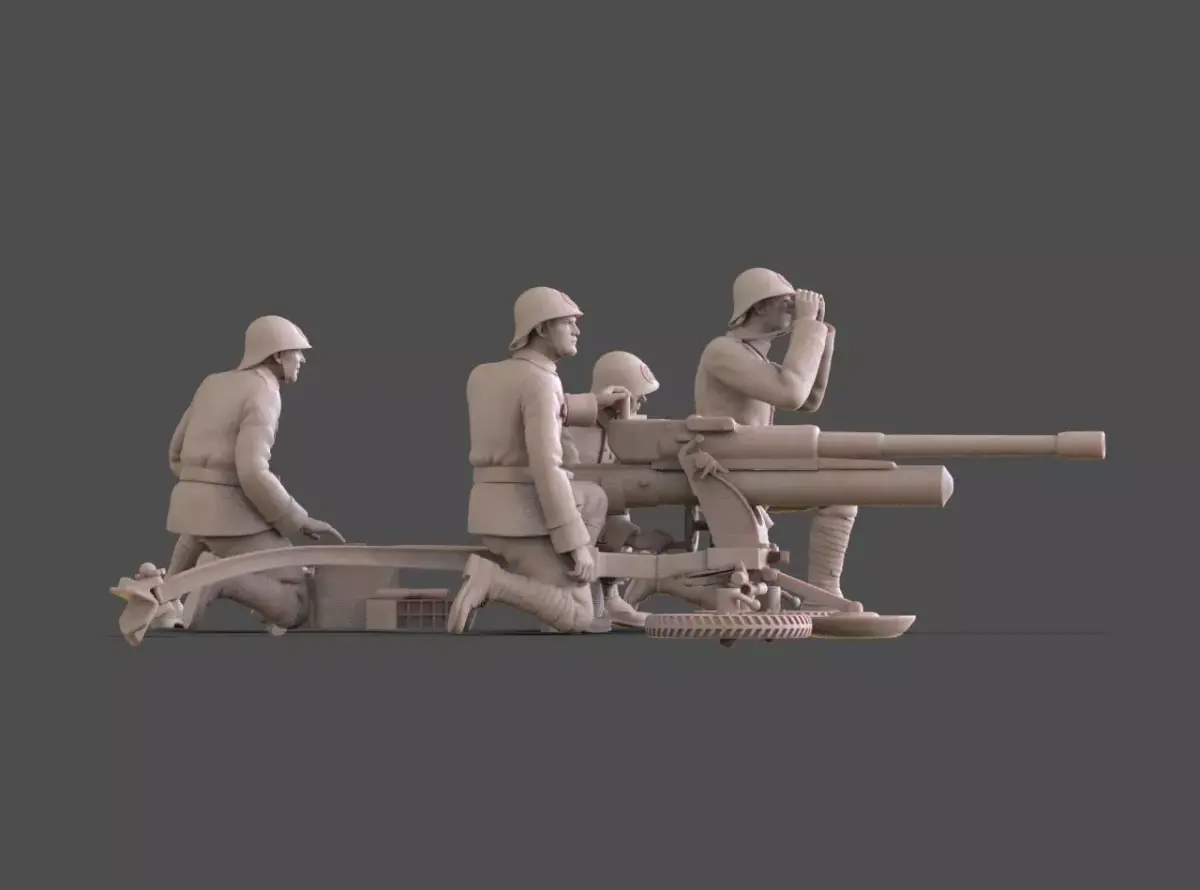 This 3D model set depicts Netherlands Army soldiers during World War II, operating an artillery gun.Figures are based on historical uniforms and equipment used by Dutch forces in the early WWII period.