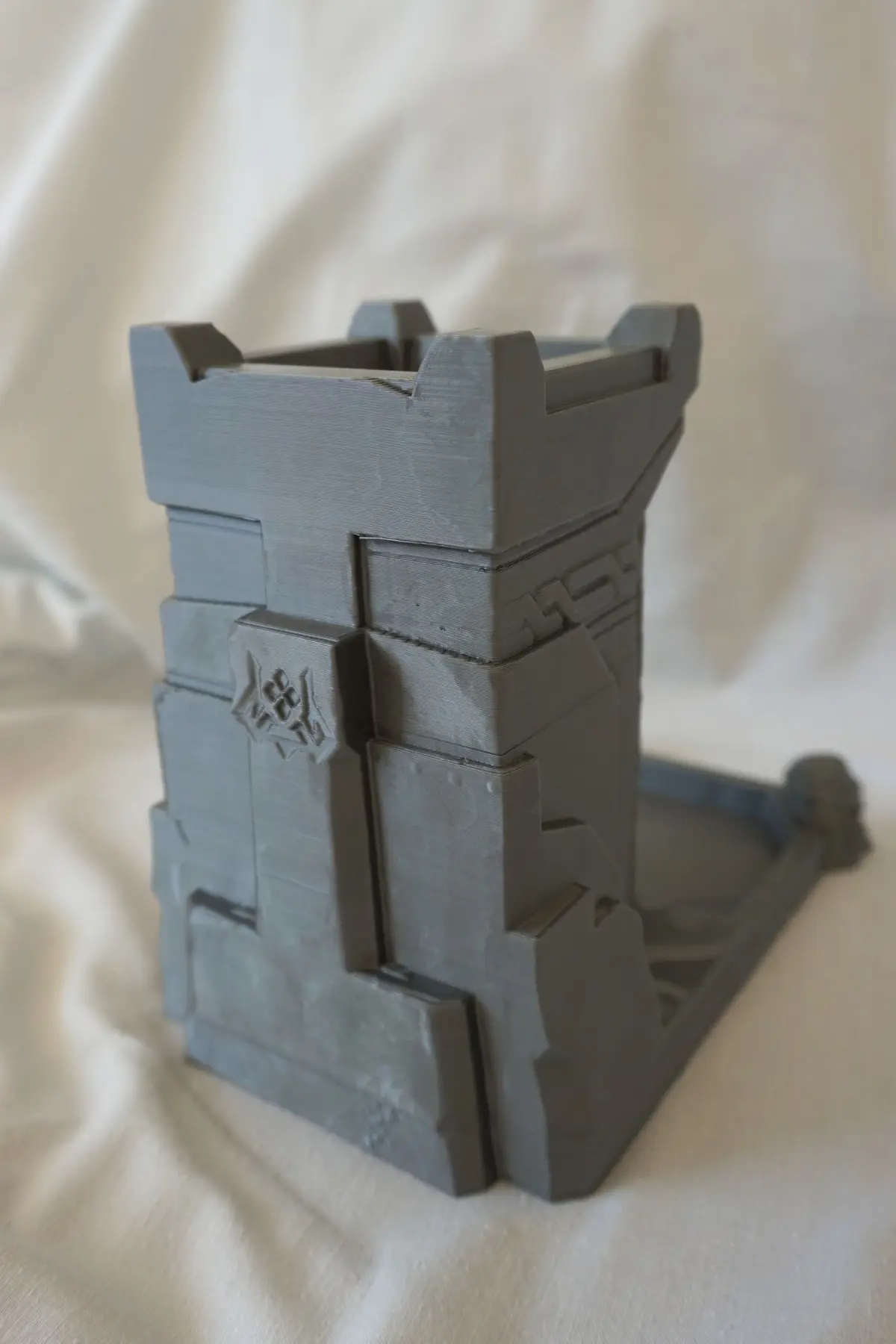 A dice tower with the look of a medieval dwarf castle tower inspired by LOTR and other fantasy movies.It will fit great for playing board games and DND campaigns.