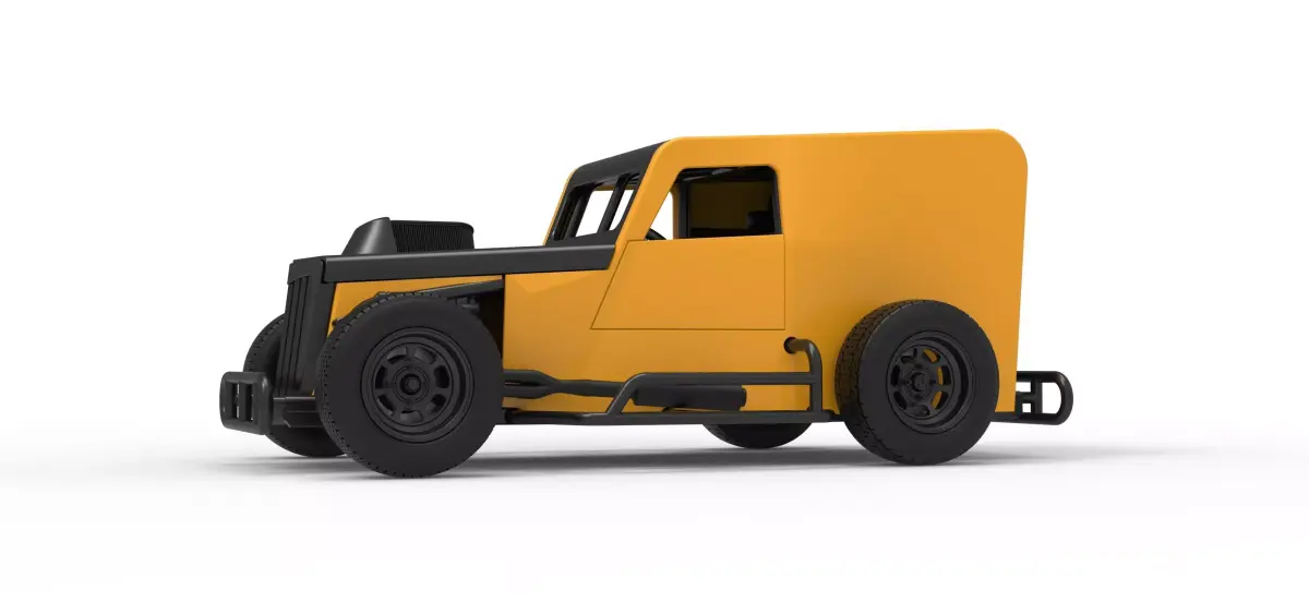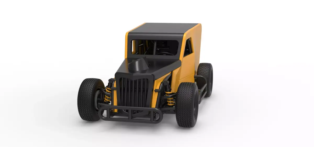 The model consists of parts: Air filter, Engine, Exhaust, Frame door, Frame, Front bumper, Front grid, Front rims, Front tires, Hood, Left bumper, Mud guard, Radiator, Rear bumper, Rear rims, Rear tires, Right bumper, Seat part 1,2, Shell central part, Shell left side, Shell right side, Shifter, Steering wheel, Tank.