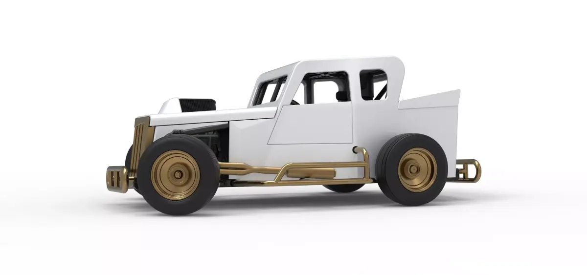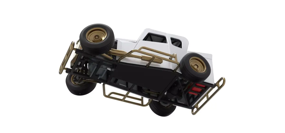 The model consists of parts: Air filter, Engine, Exhaust, Frame door, Frame, Front bumper, Front grid, Front rims, Front tires, Hood, Left bumper, Mud guard, Radiator, Rear bumper, Rear rims, Rear tires, Right bumper, Seat part 1,2, Shell central part 1,2, Shell left side, Shell right side, Shifter, Steering wheel, Tank.