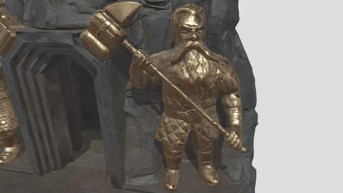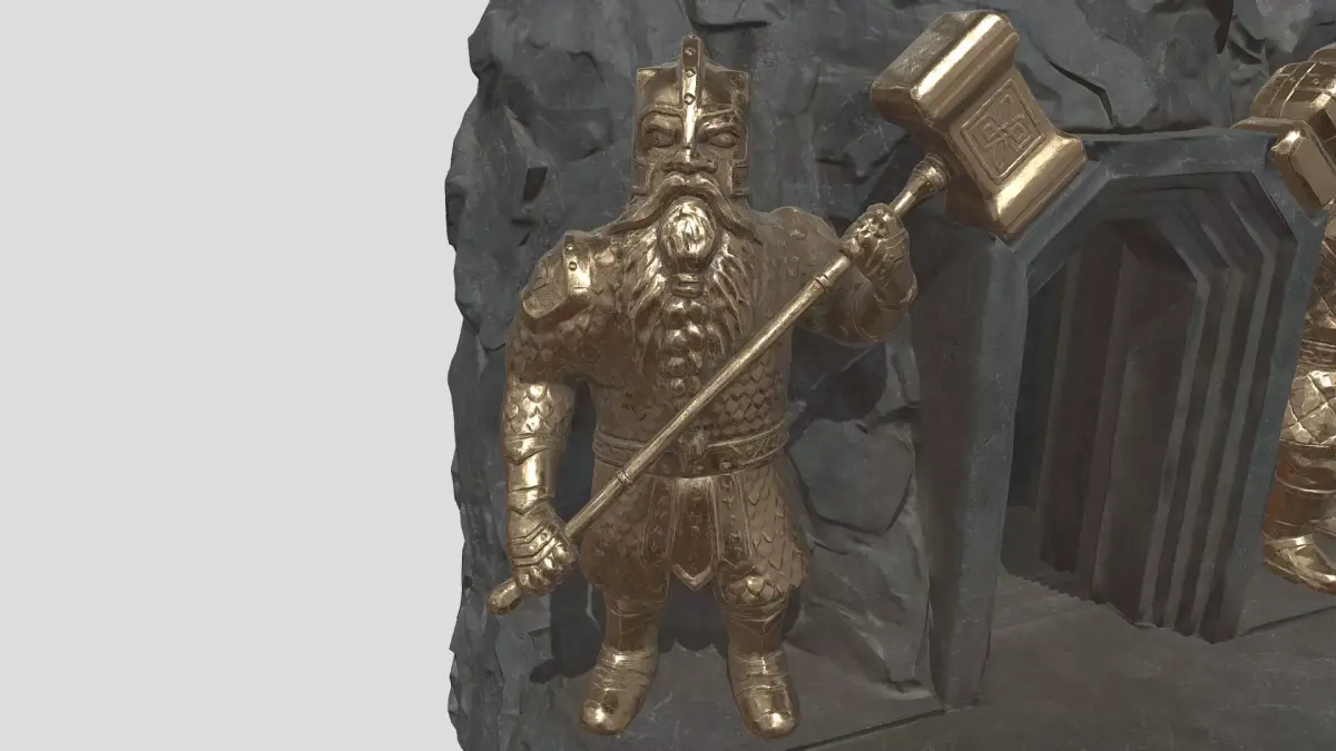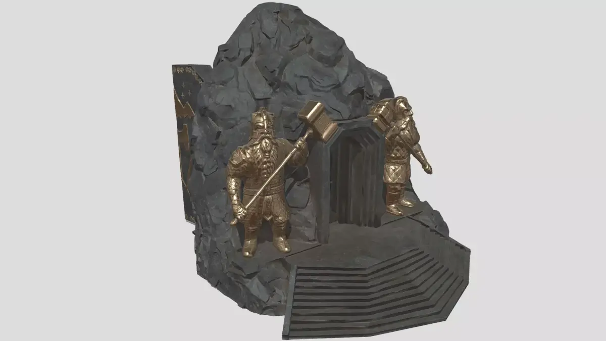 Dwarf entrance to mine or city. There is two versions of statues and doors (bronze and stone). Doors are designd to be openable.