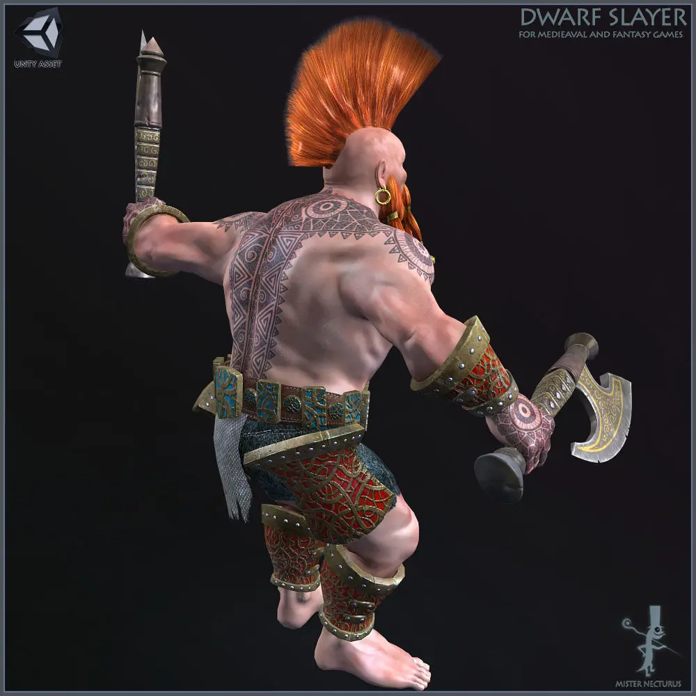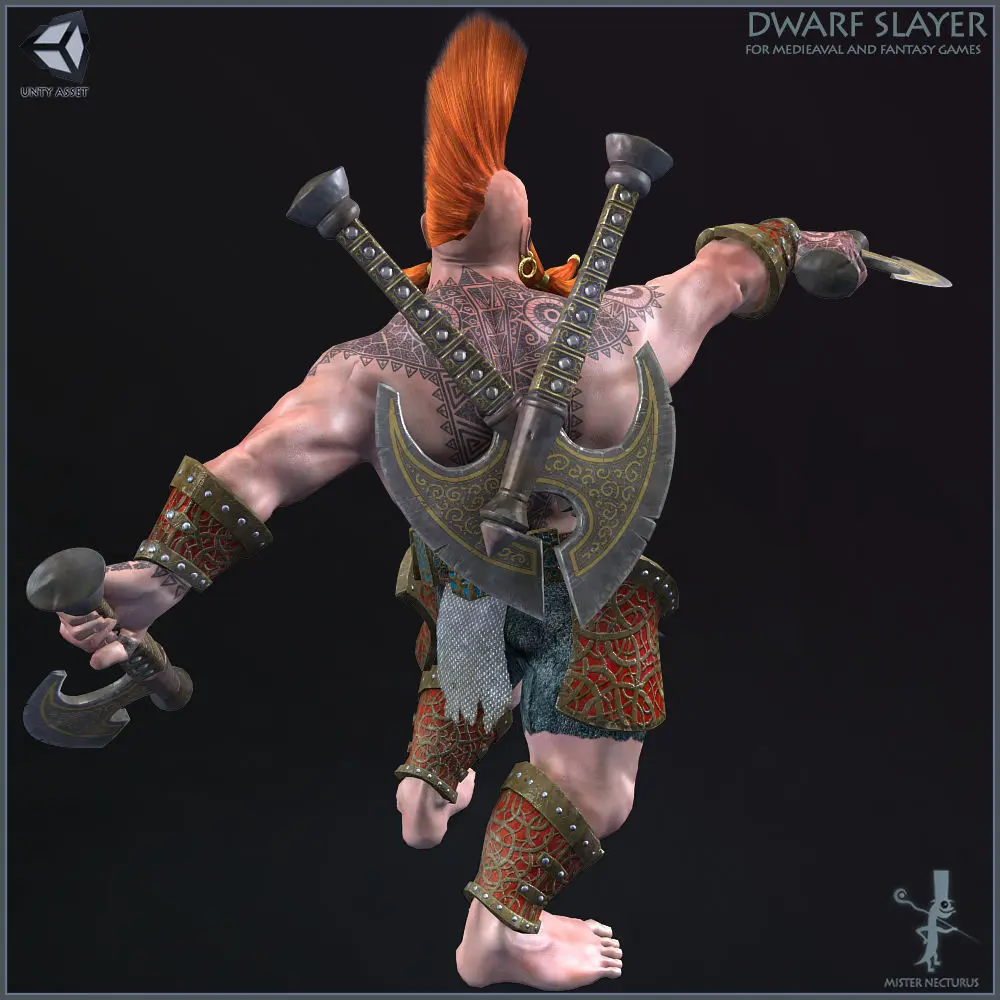 Body parts: Body, Hair.Armor parts: Belt, Skull Mask, Hands Armor, Legs Armor, Feet Armor, EarningsWeapons: 4 Axes, two in hands and two at dwarfs back.