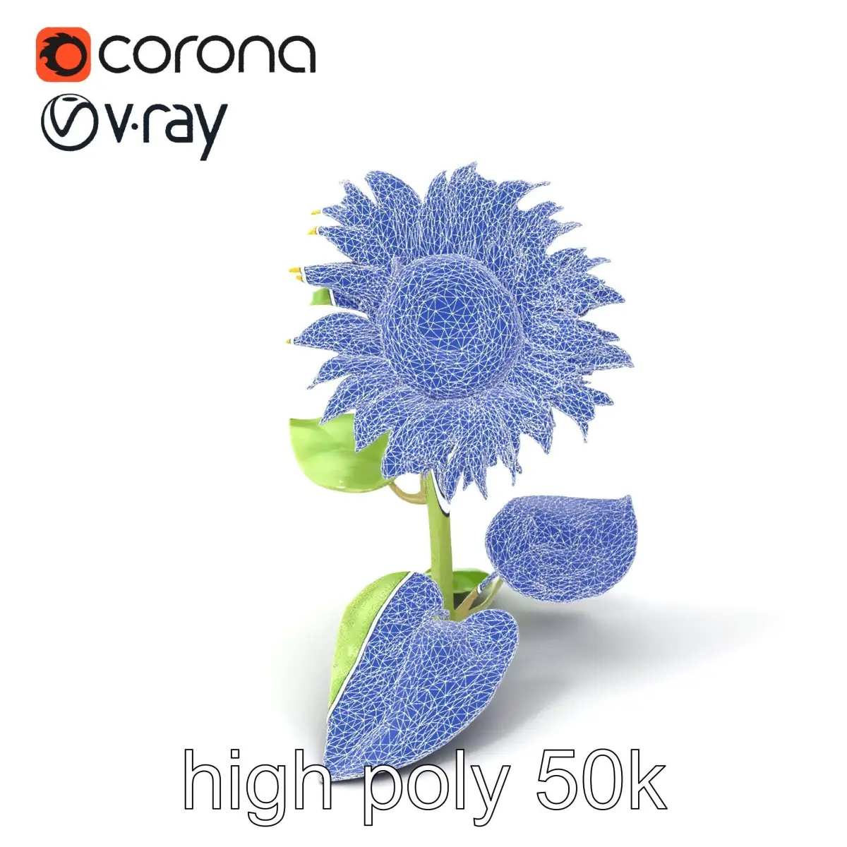 Each model has 3 levels of detail: low-poly, middle-poly, and high-poly, which allows for the use of this model in production rendering (such as 3ds max, Maya, Cinema4D, Blender, Vray/Corona/Cycles and all other), game engines (Unity and Unreal compatible), and interactive presentations, providing a choice of detail based on the LOD System principle. This enchanting Dwarf Sunflower model is ideal for creating beautiful garden scenes, nature simulations, and vivid animations. The model's textures are PBR, Diffuse, NormalMap, and reflection/roughness/metallic, suitable for any modern rendering engine. All models accurately unwrapped and have no overlapping UV. The glossy green leaves and textured stems add realism and detail to any scene. All textures are 4096*4096 in size. Please like and leave a comment for the model if you enjoyed it.