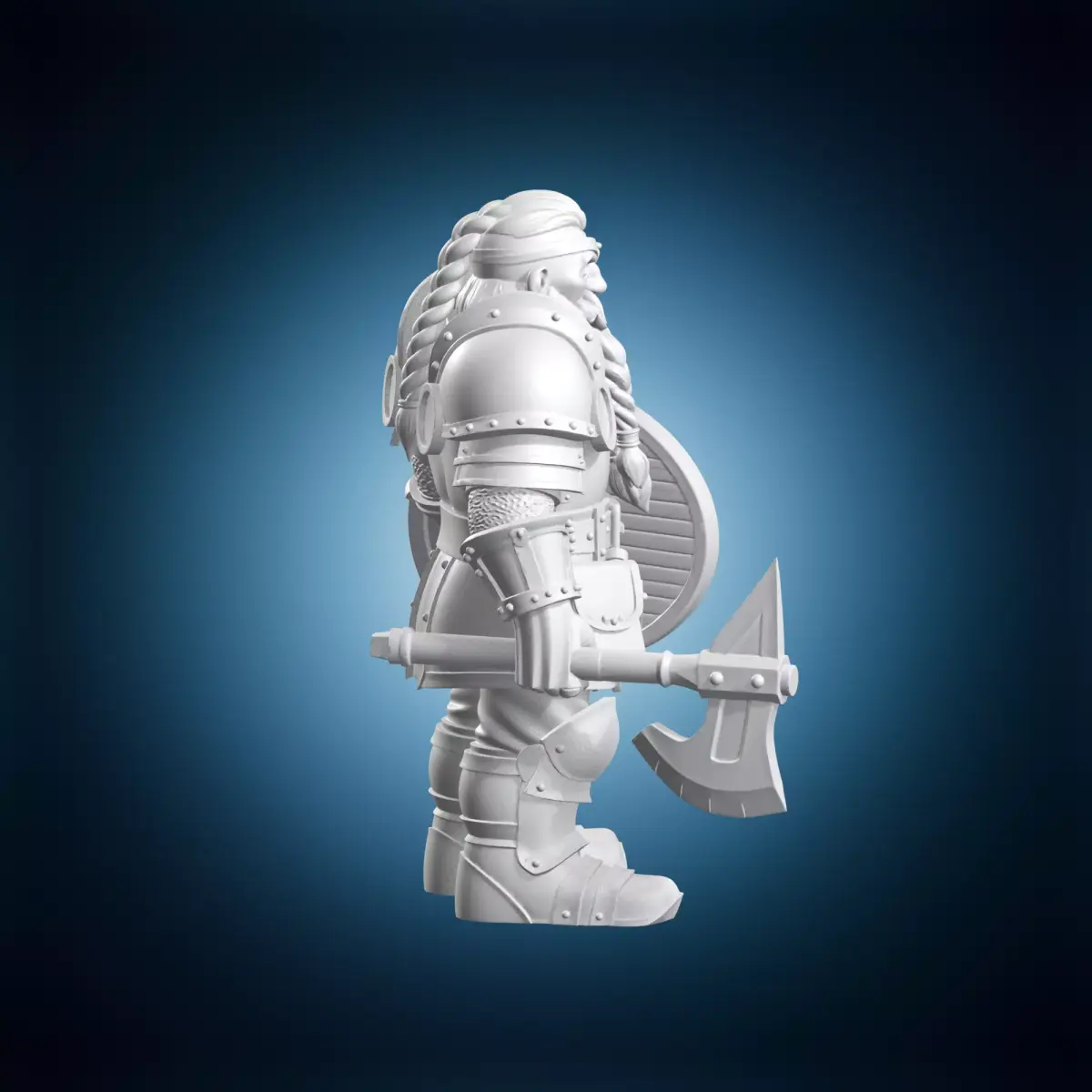 Deep within the mountain halls where the echo of hammers never ceases stands a champion of the stone. This Dwarf Warrior fantasy RPG miniature represents the pinnacle of subterranean craftsmanship and martial prowess. Clad in heavy plate mail adorned with runes of protection he grips a massive double-edged battle axe forged from the purest mithril. His stout frame is shielded by a thick tower-style bulwark capable of withstanding the fiercest dragon breath or orcish charge. The level of detail on this model is exceptional. You can see the individual links of chainmail and the braided texture of his legendary beard which reaches down to his waist. This miniature is perfectly scaled for 28mm or 32mm tabletop gaming systems. It comes with an integrated textured base featuring cracked stone and debris typical of a dungeon floor. For best results we recommend printing this model on a high-resolution resin printer to capture every intricate engraving on the shield and axe head.