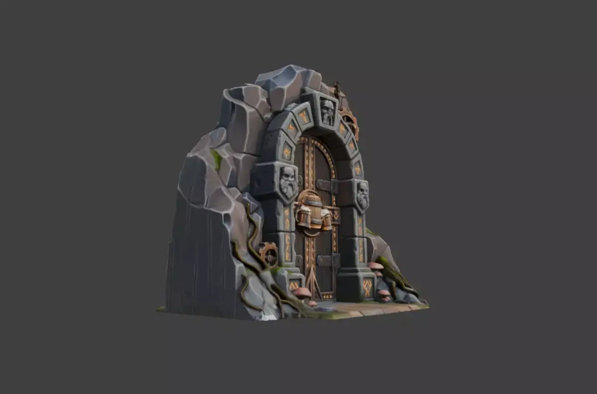 Dwarven Portal is a high-detail fantasy environment asset inspired by ancient dwarven architecture, designed for games, cinematics, illustrations, and world-building projects. This portal represents a monumental gateway carved deep within stone, combining massive rock structures, intricate runic engravings, and a sense of timeless craftsmanship associated with dwarven civilizations.