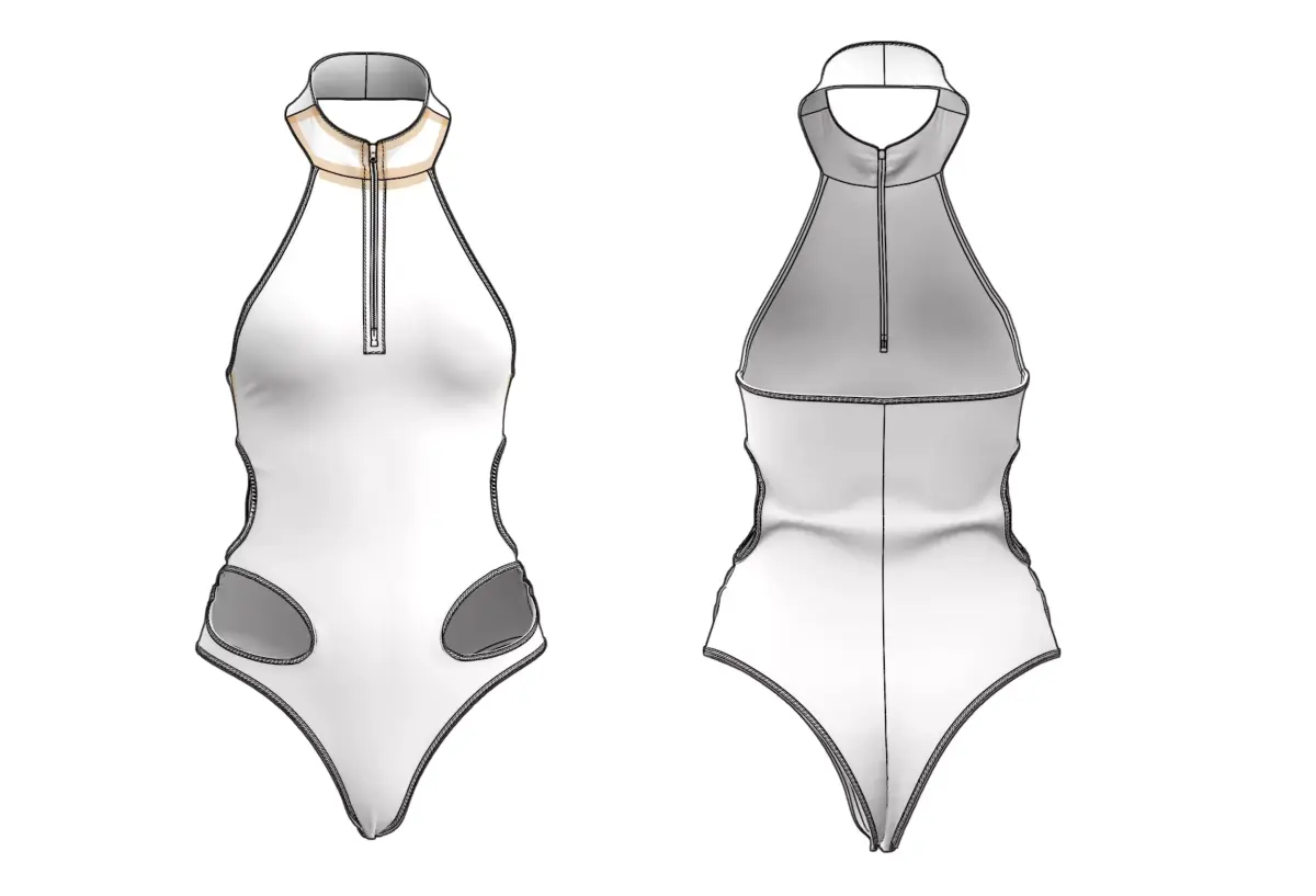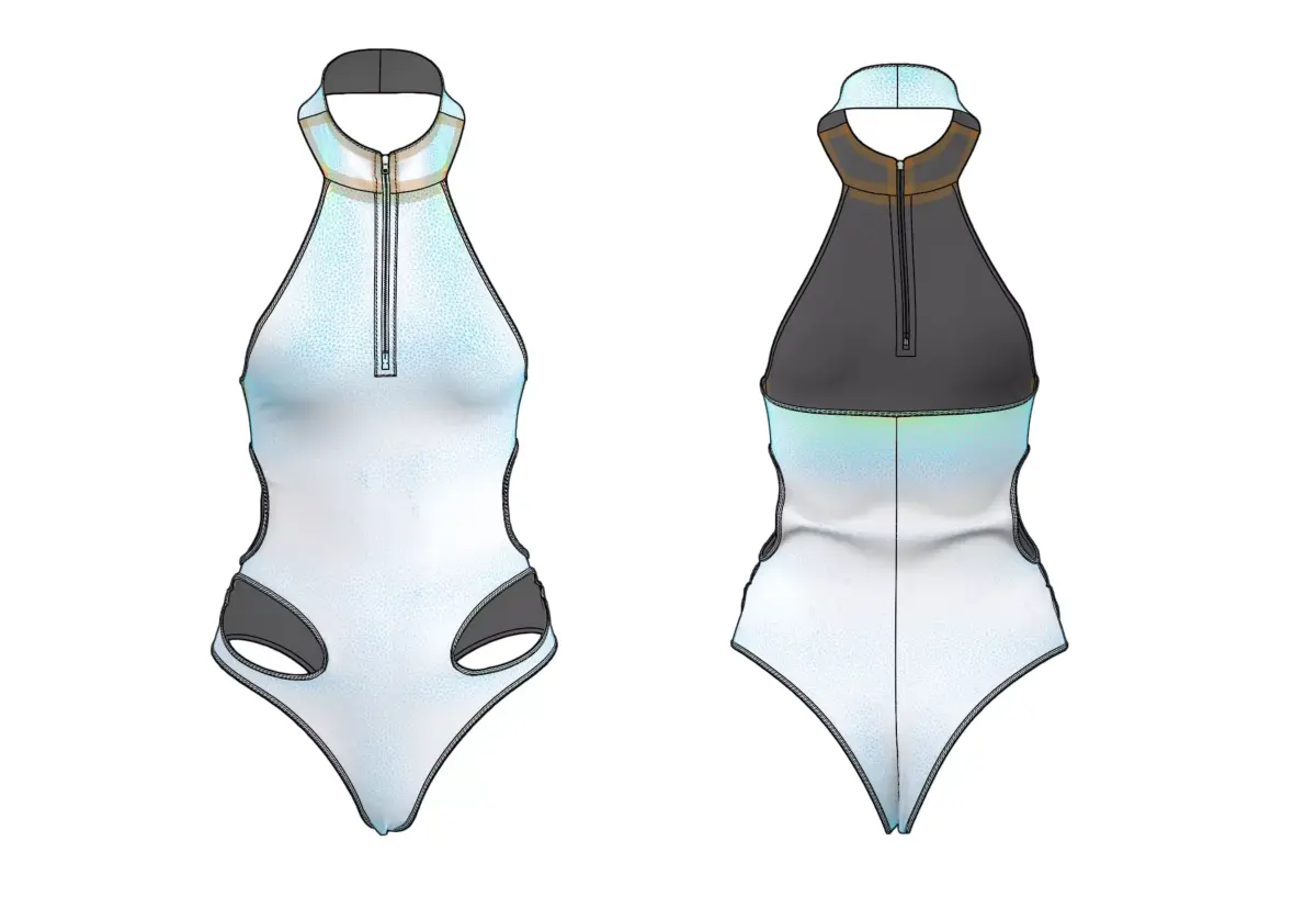 Hey there!High-performance athletic swimsuit with halter neck and front zipper! Perfect for sports animations, competitive swimming scenes, fitness characters, or activewear collections. That sleek racing design looks so pro!