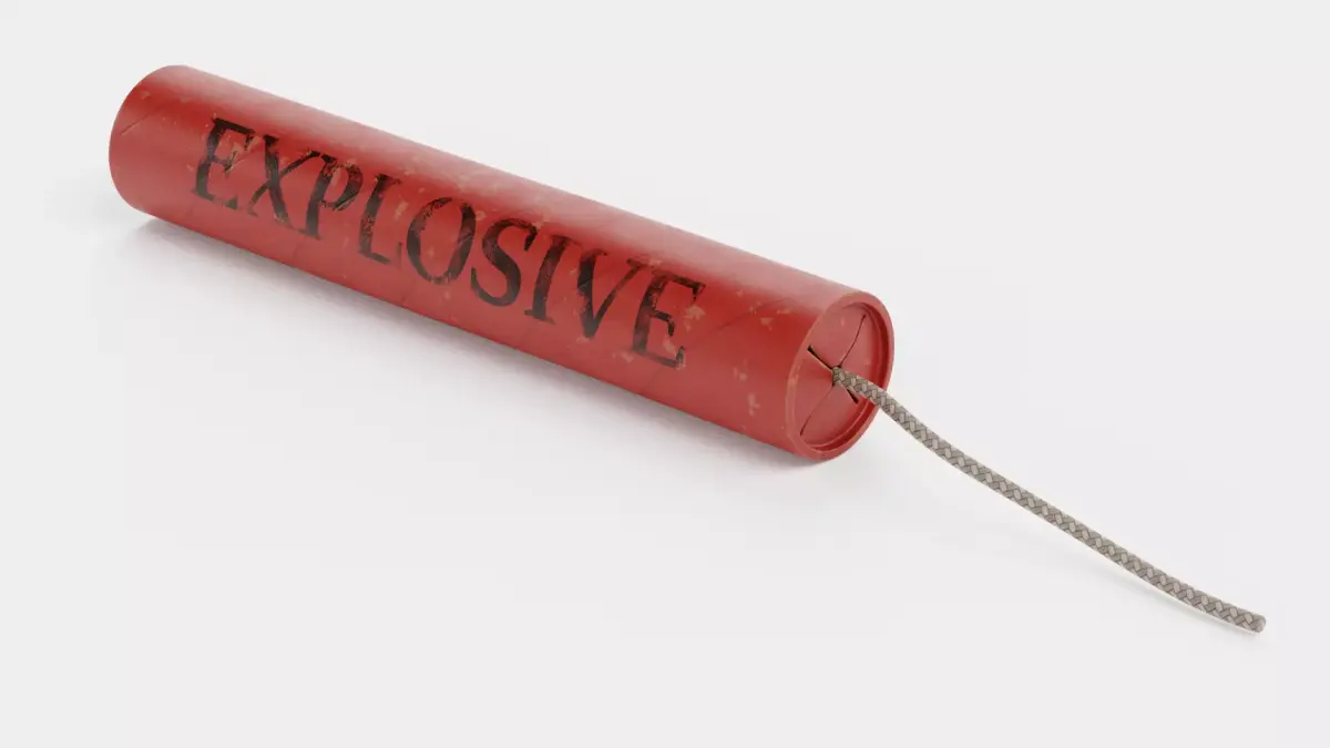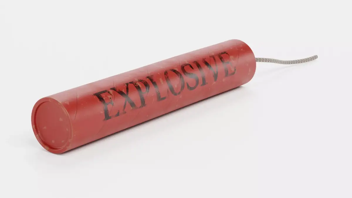 A classic dynamite stick built around instantly recognizable visual cues — bold red wrapping, printed label, and a visible fuse, The asset captures subtle material detail and surface character, giving it a believable look suitable for both close-up shots and wider scene compositions. Well suited for scenes that rely on strong visual storytelling, from mining and demolition setups to cinematic shots or game environments.